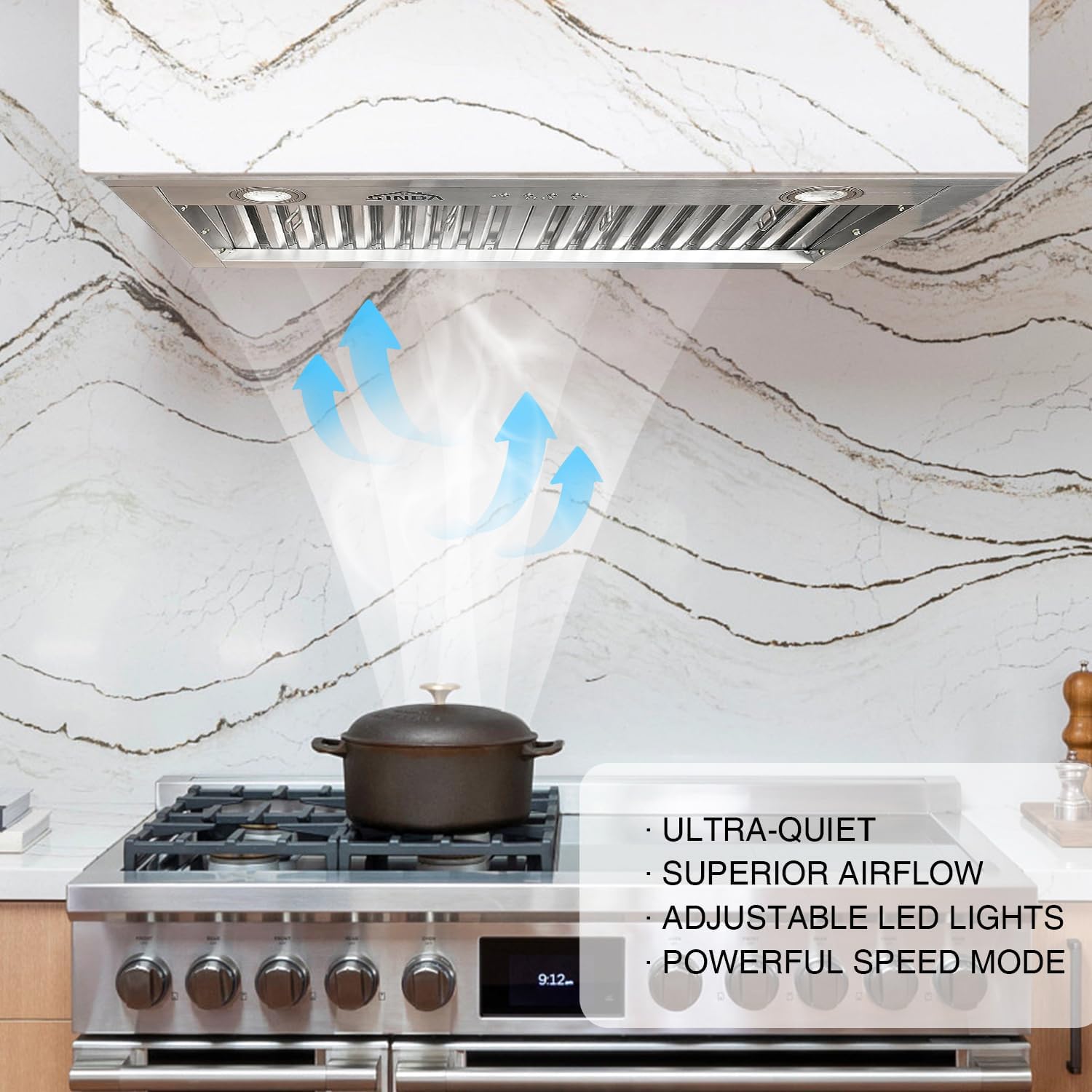 4-speed fan adjust to your needs to suit a variety of foods and cooking. Three-minute delay power off function. High power 1150 CFM ventilation to effectively extract cooking odors, smoke, steam, heat.