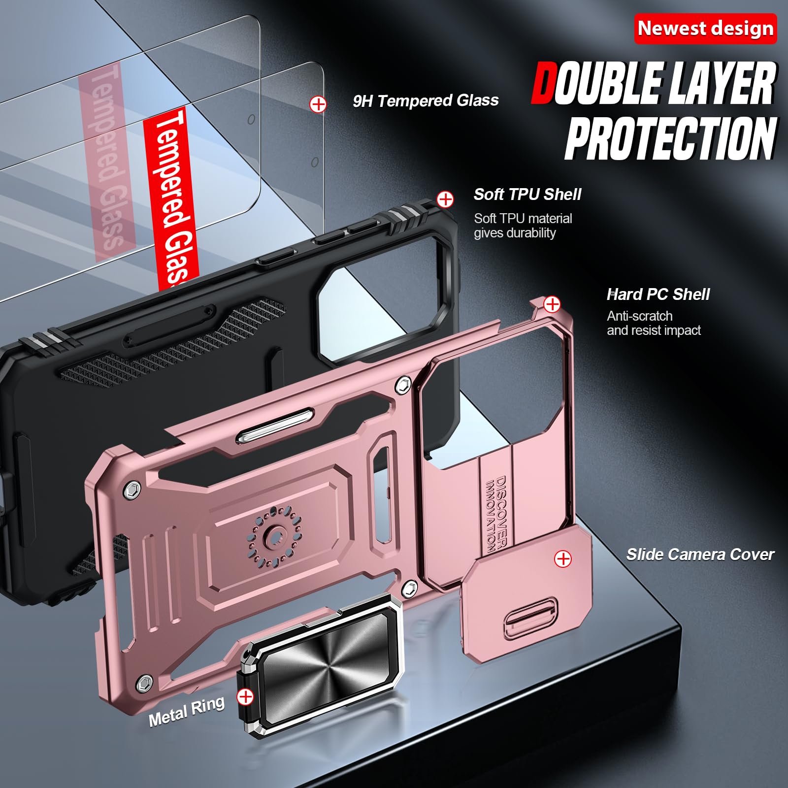 Slidable Camera Lens Cover: The phone case Samsung upgraded anti-scratch sliding camera protector protects your phone's camera lens from scratches, bumps, scratches, knocks, bumps and any other mishaps, and prevents dust build-up while maintaining its original responsiveness