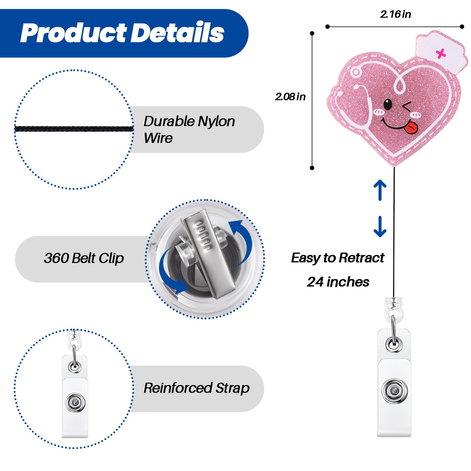 Retractable Cord: The retractable reel cord extends a maximum of 24 inches, more than enough to reach comfortably as far as your arm can reach. The flexible retractable feature enables you to effortlessly display your badge without removing it, enhancing your efficiency at work.