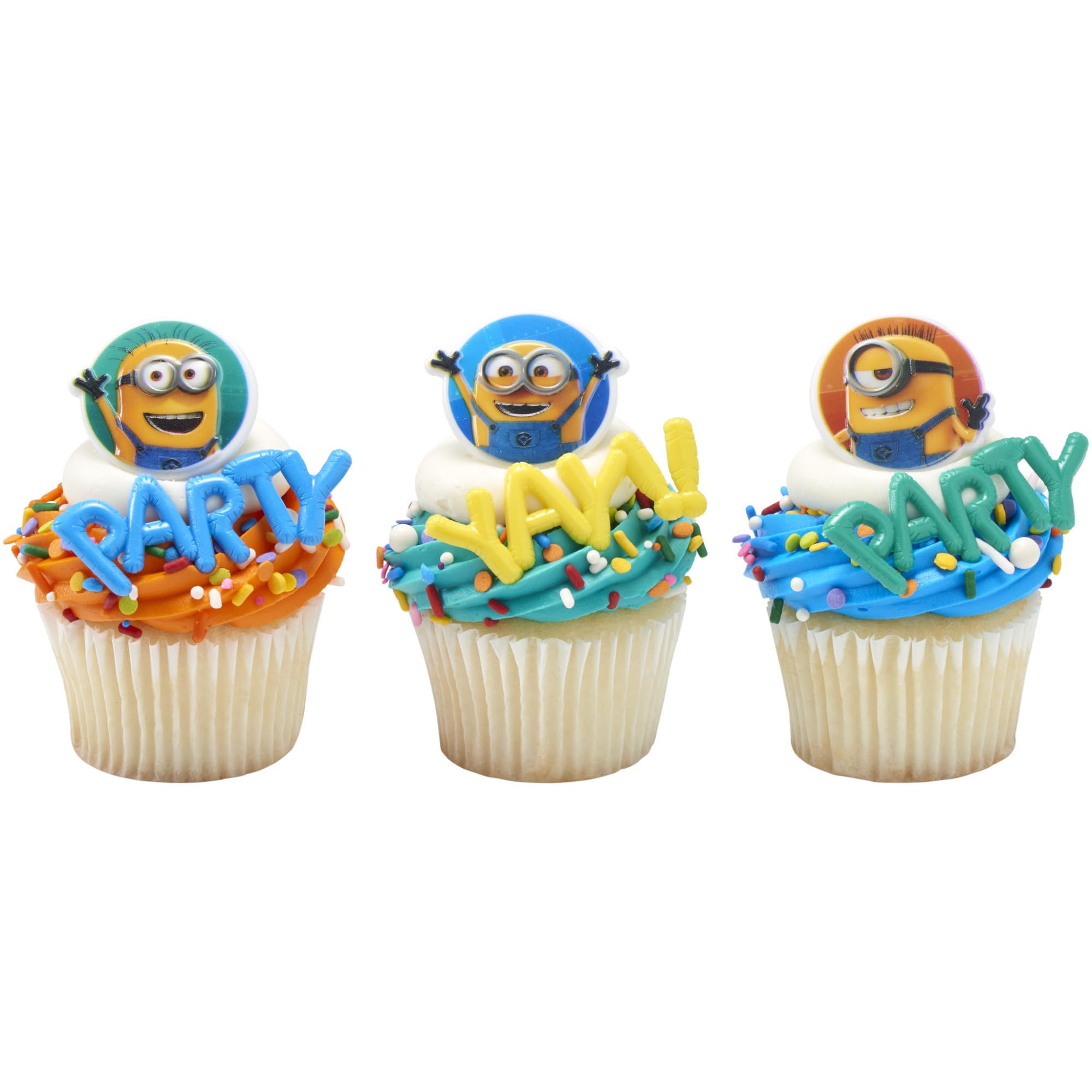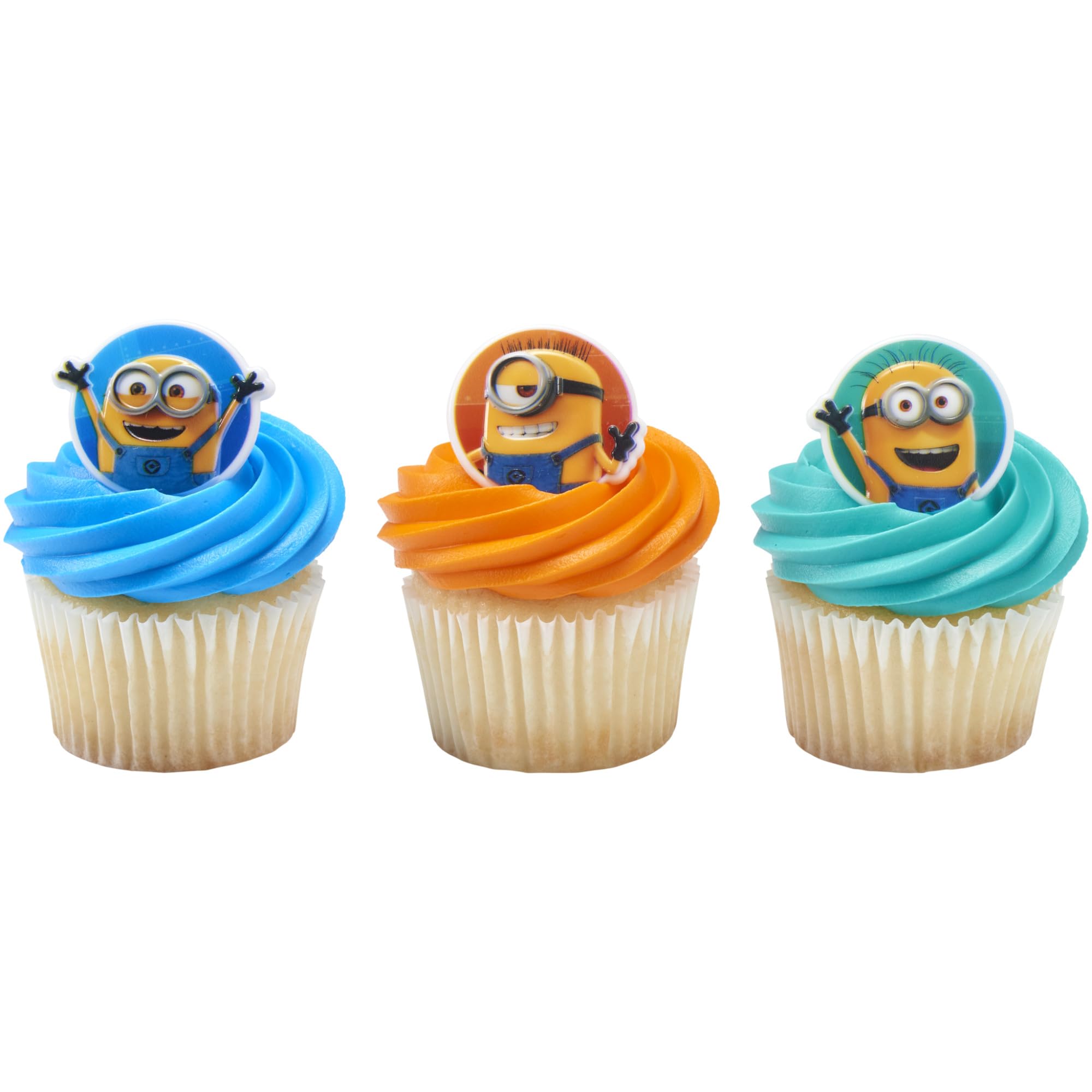 Despicable Me Minions Cupcake Rings - 24 Cupcake Rings featuring your favorite Minions; Phil, Carl and Bob for all to enjoy.