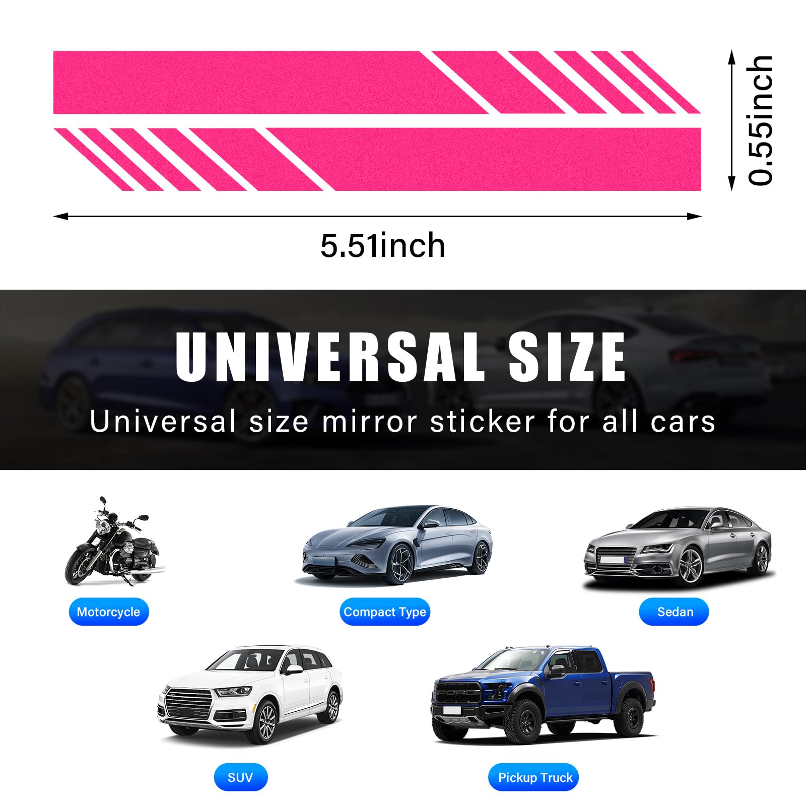 【Wide Application】: This reflective decal is suitable for most models on the market, including cars, trucks, off-road vehicles, and SUVs. In addition to being affixed to the rearview mirrors, it can also be affixed to the front of the car, the car body, the bumper, etc.