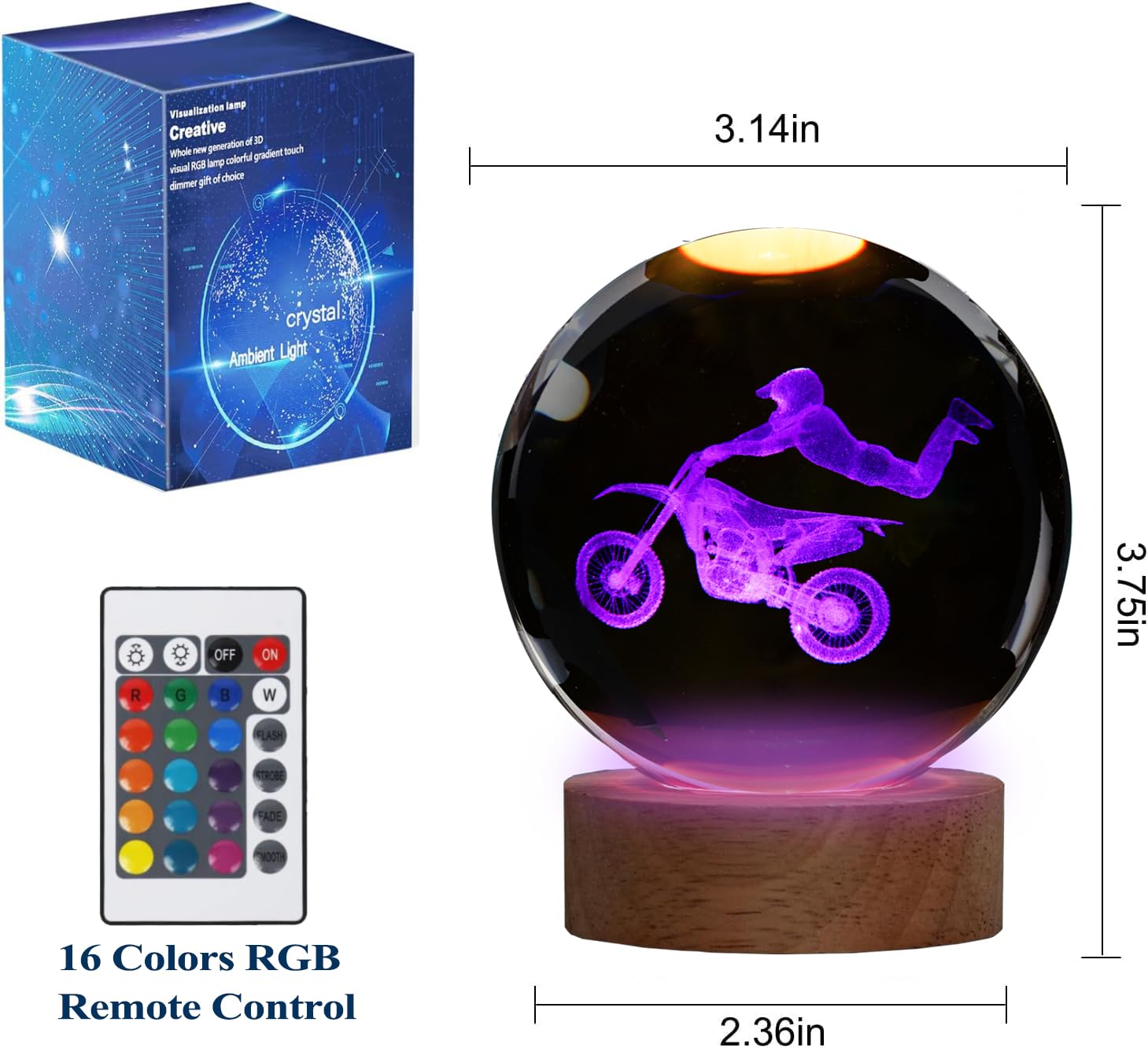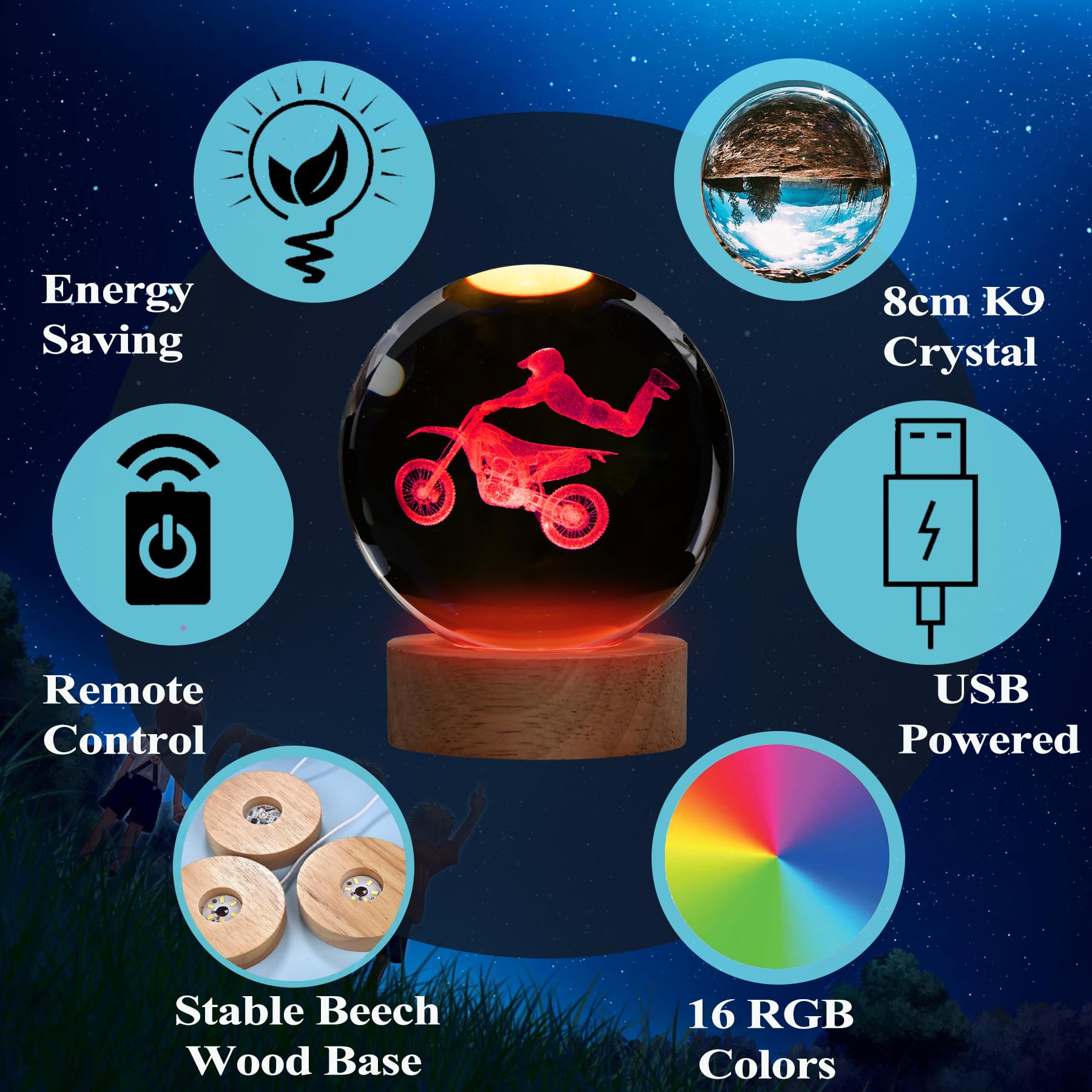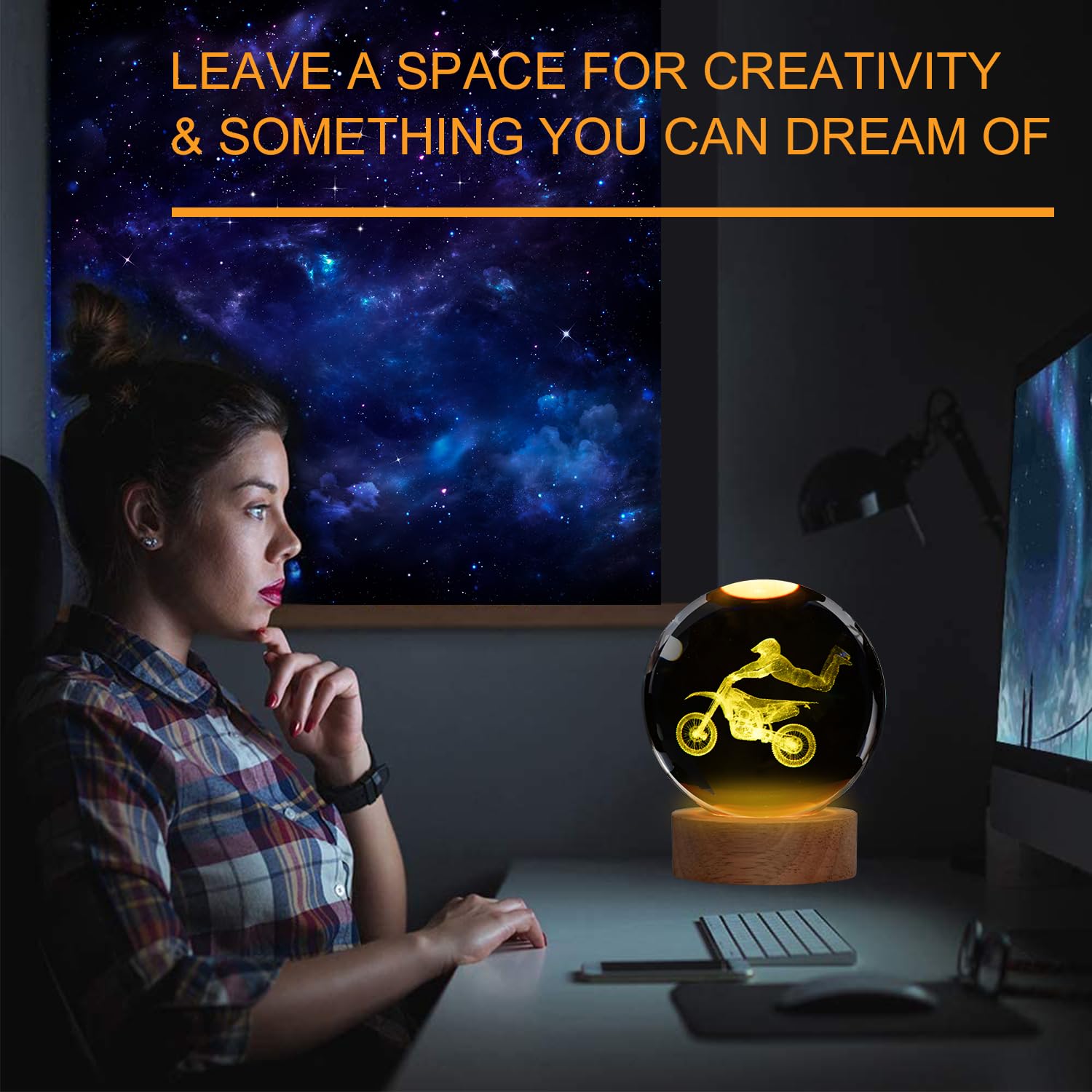 Thoughtful Gift: Whether for yourself or a loved one, this crystal ball lamp makes a delightful and unique present for any occasion, adding a touch of magic to any space. It's the perfect gift for dirtbike enthusiasts, interior designers, or anyone who appreciates a little bit of adventure in their world.