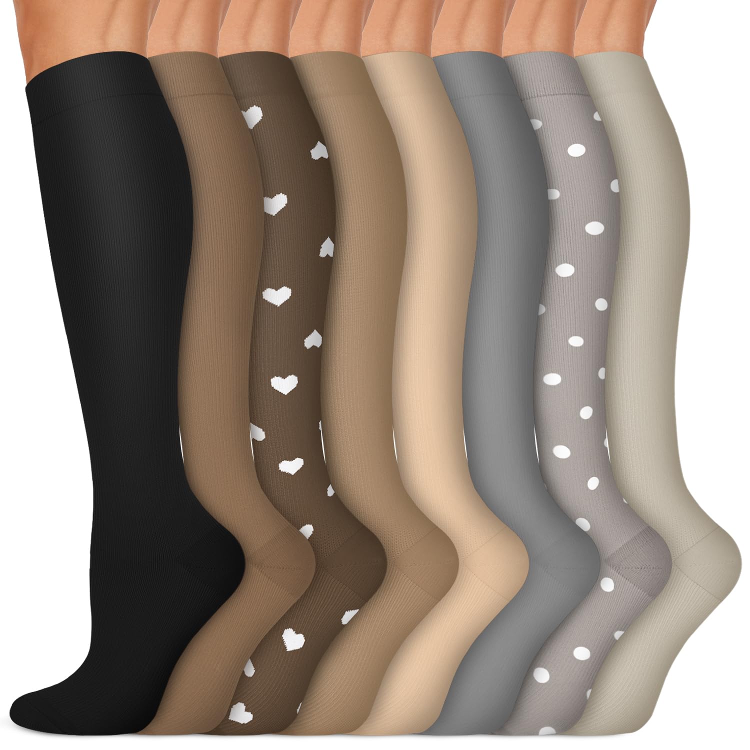 ✅ 8 PAIRS OF PREMIUM COMPRESSION SOCKS – Step into all-day comfort with our 8-pack of high-quality compression socks, designed for those who are always on the move. Featuring stylish color combinations, these socks are perfect for a full week of wear without the hassle of daily washing. Whether you're at work, traveling, or hitting the gym, these socks deliver exceptional support and value. They also make a practical and thoughtful gift for anyone who values comfort and health.