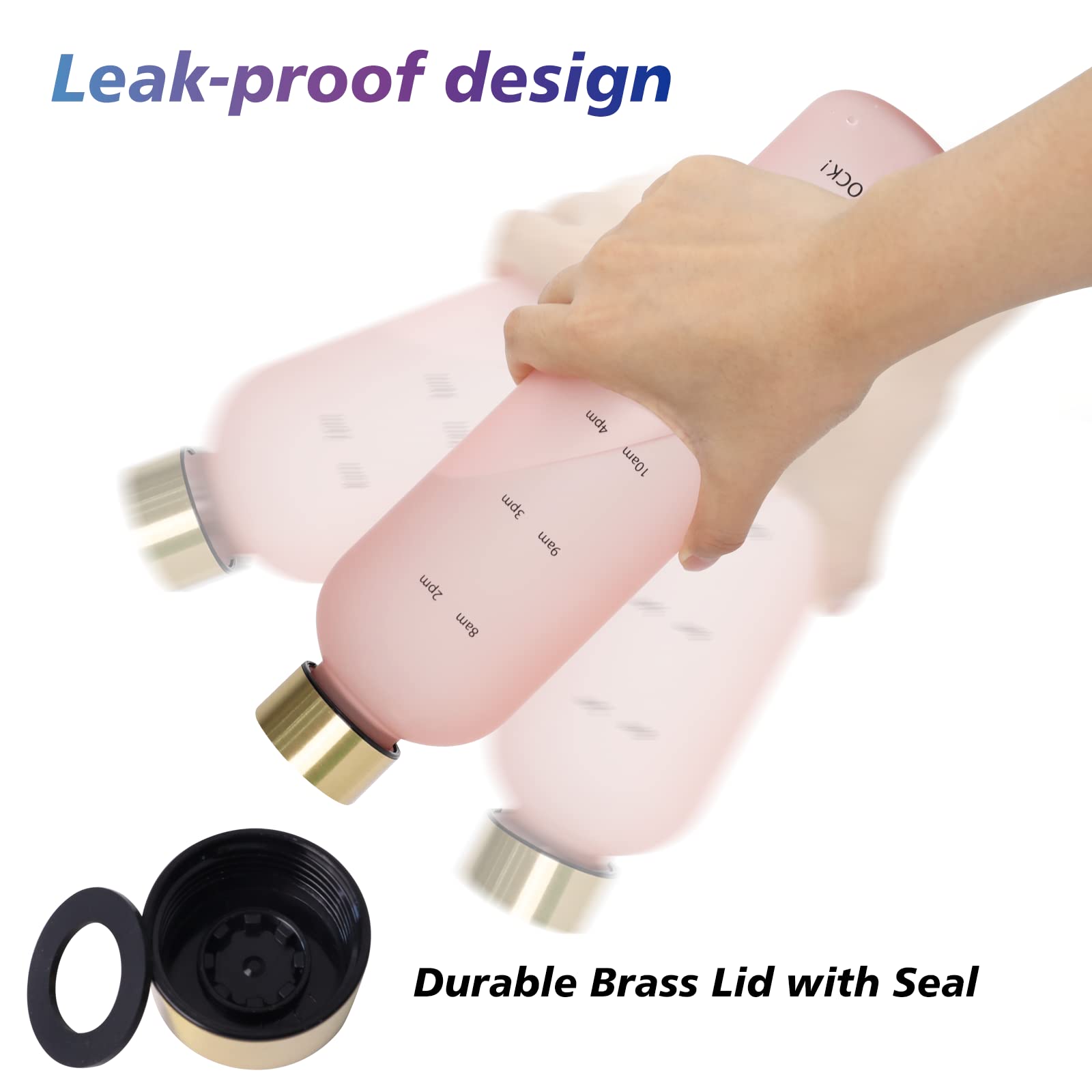【Leakproof&Durable】The aesthetic water bottles comes with brass covered lid. The bottle is 360 degree leak proof and it is also drop resistant.