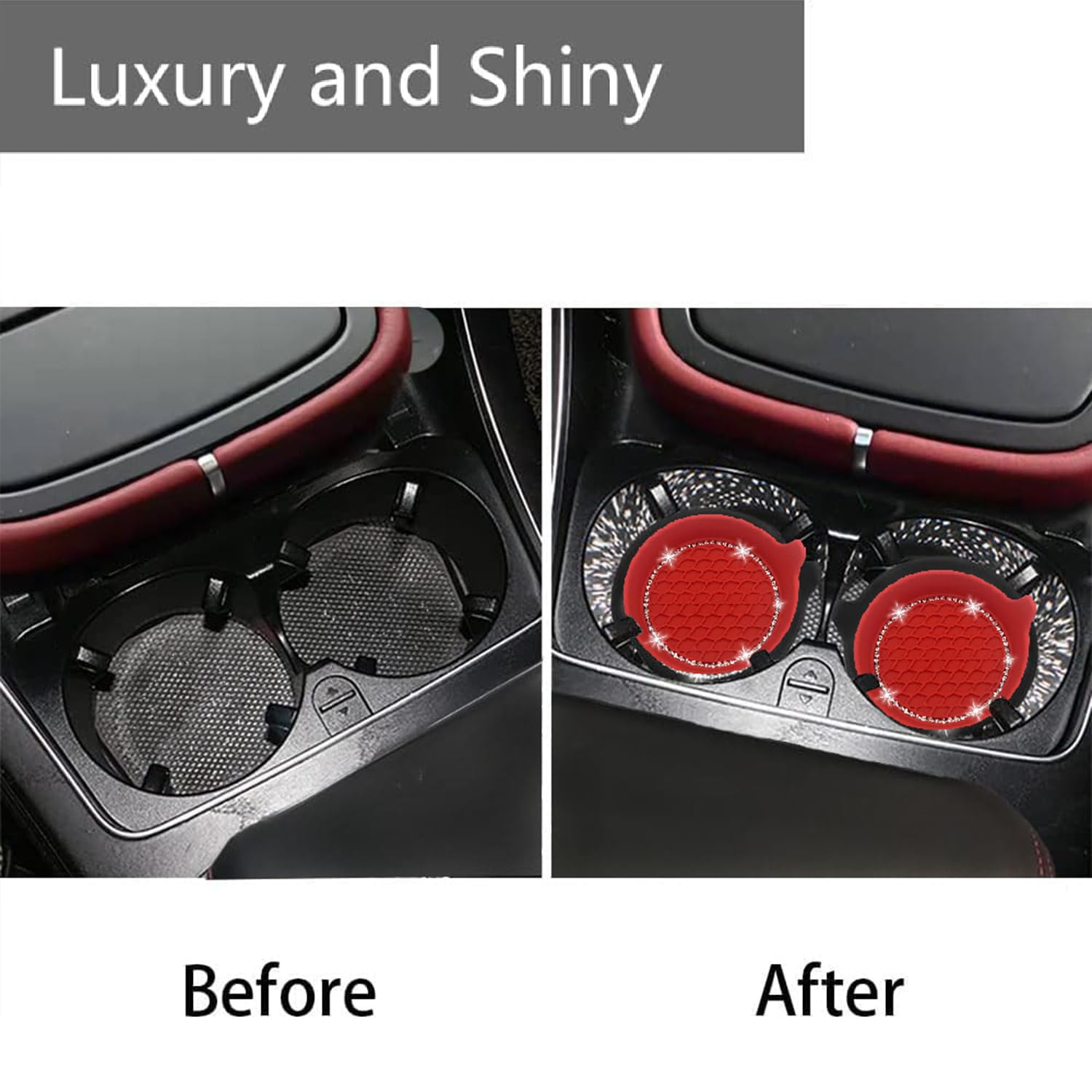 NBTEPEM 4pcs Bling Car Cup Holder Coaster, 2.75 inch Anti-Slip Shockproof Universal Fashion Car Coasters Insert Bling Crystal Rhinestone Automotive Interior Accessories for Women (4 pcs, Red)