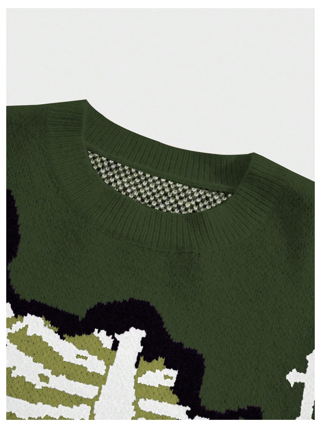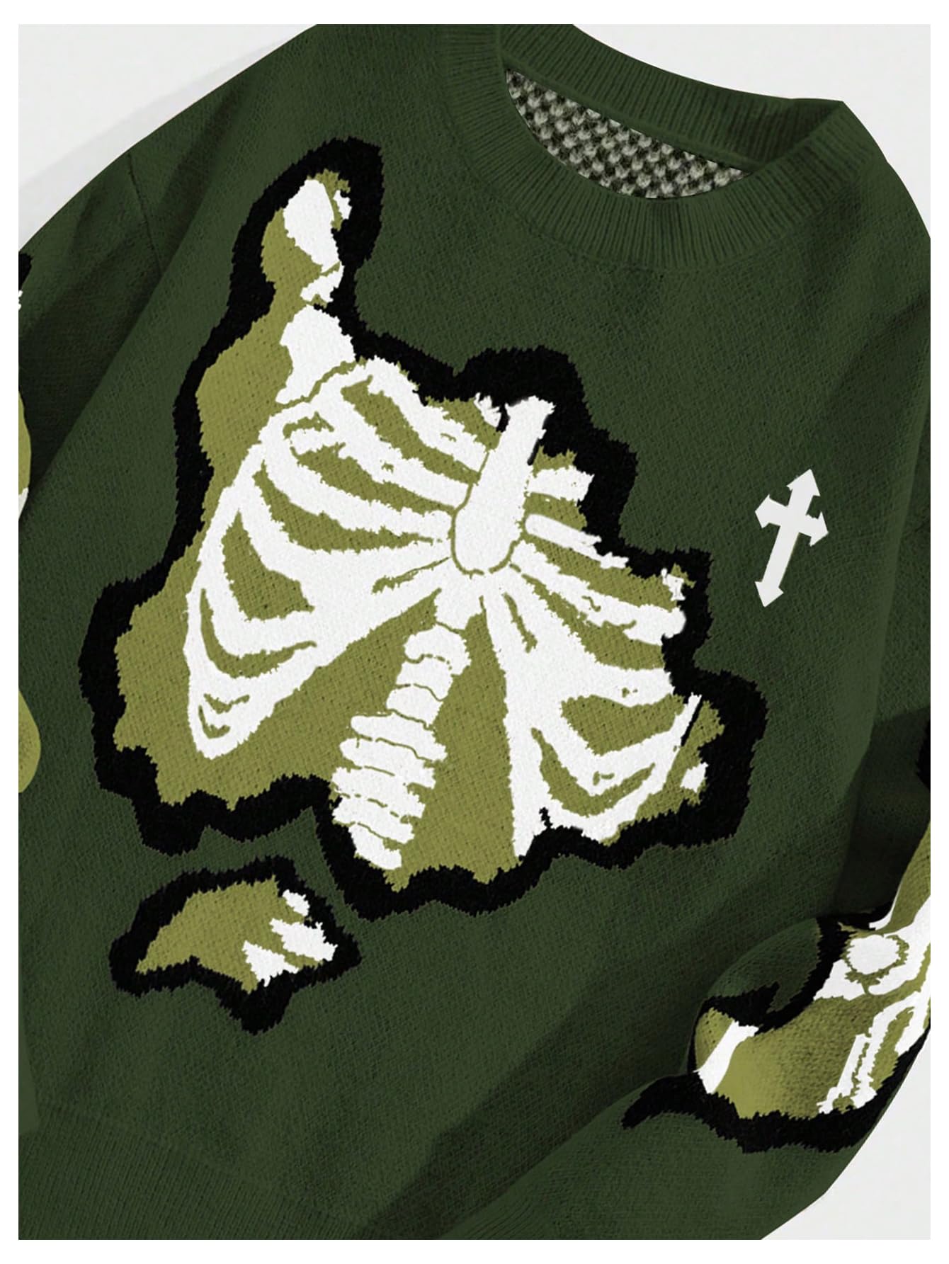 Feature: Round neck, long sleeve, drop shoulder, graphic print, pullovers, fashionable