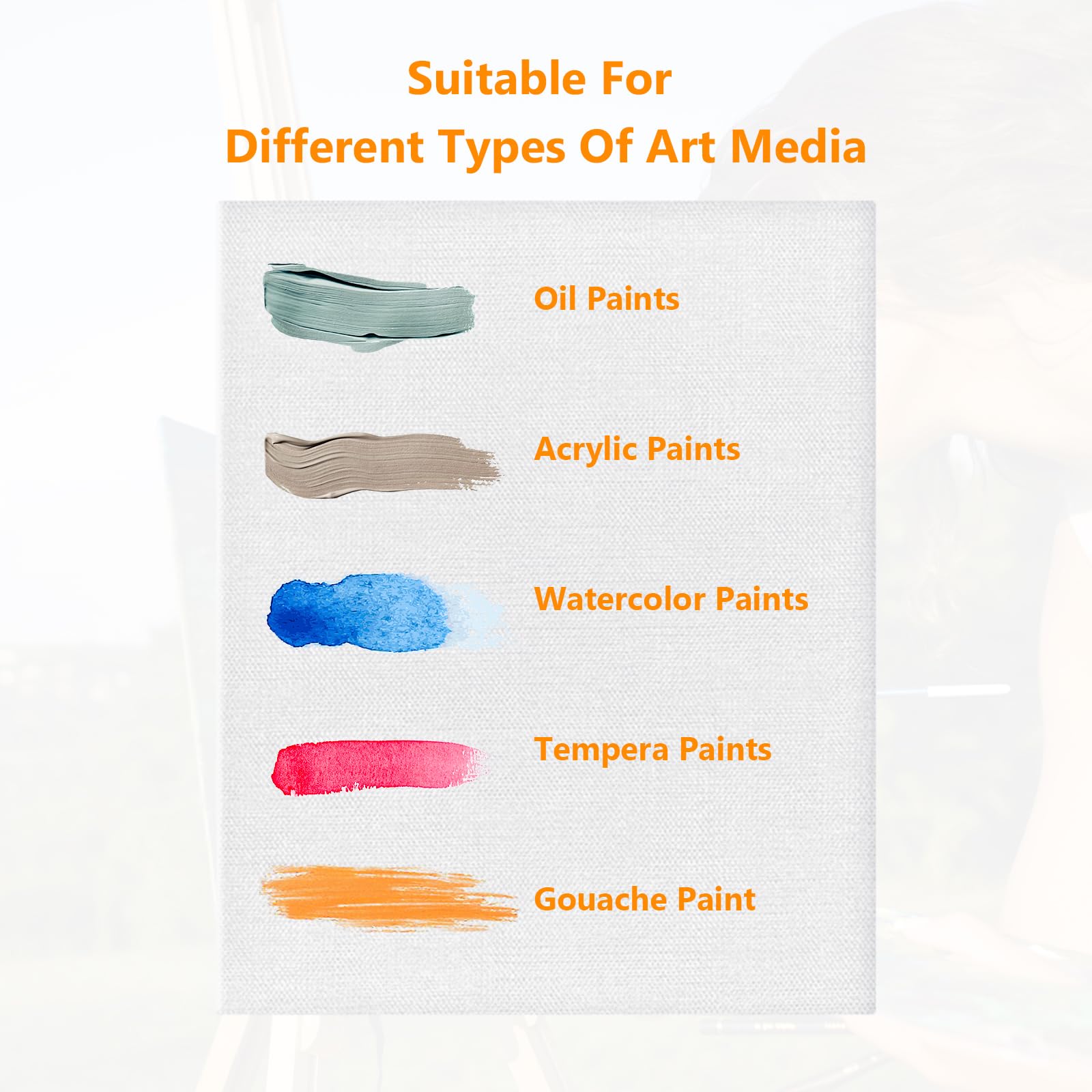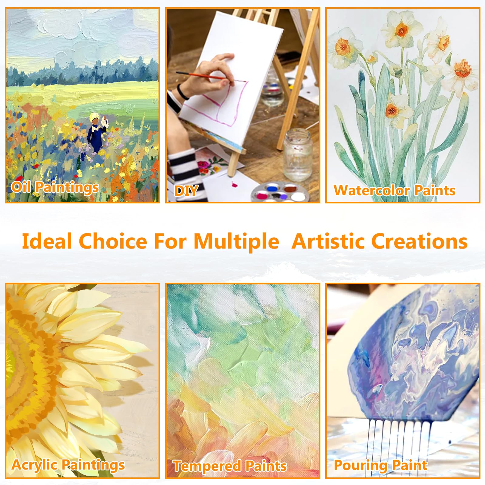 【Wide Application】Koncci large canvas offers greater coloring power and an excellent tactile feel, suitable for variety of paints such as oil paints, watercolors, acrylic paints, pastels, tempera and gouache.