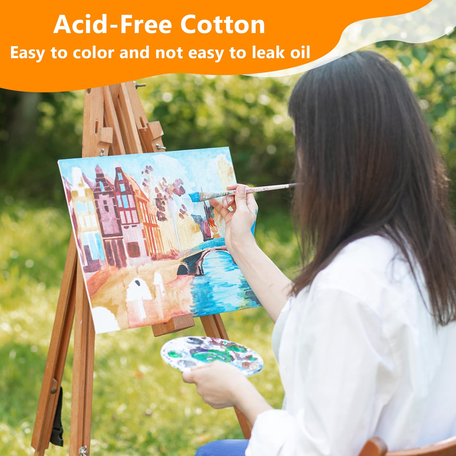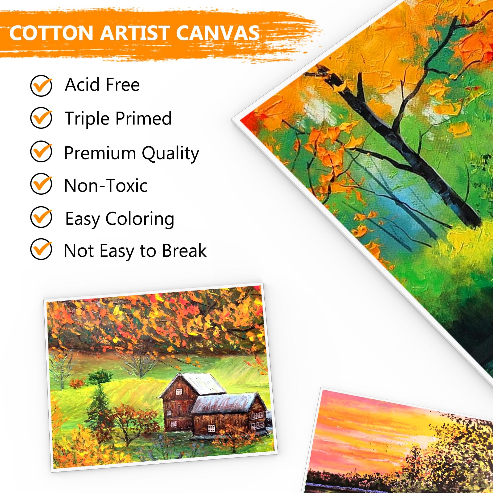 【Quality Materials】Koncci canvas for painting is made of acid-free cotton fabric, good surface texture to prevent pigment absorption. Bottom plate of canvas is made of wood pulp material, it’s sturdy, and not easy to break.