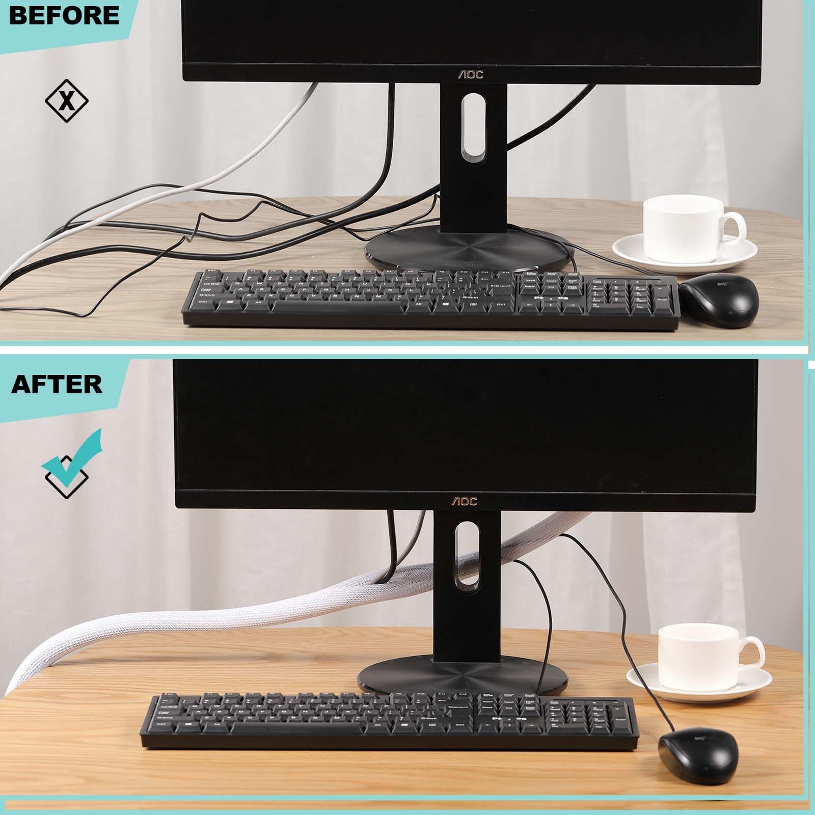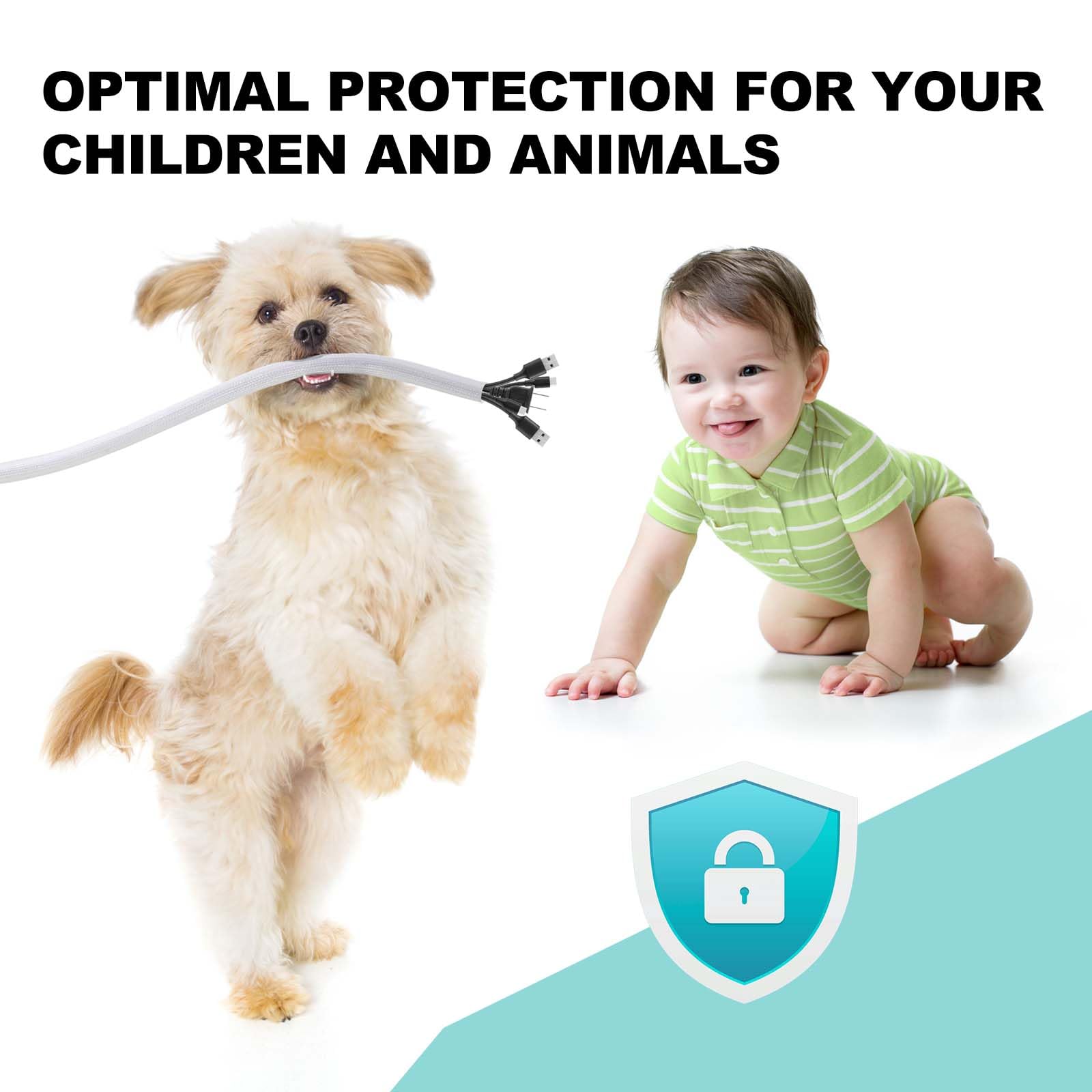 【Safer for Pets and Children】 AGPTEK Cable Sleeve, pets dog cat cord protectors, pet-friendly and non-toxic, safe for pets and children. It protects cable wires, prevents children and pets rabbits, dogs, cats, hamsters, and gerbils from chewing and scratching on them, and makes your home safer and more organized