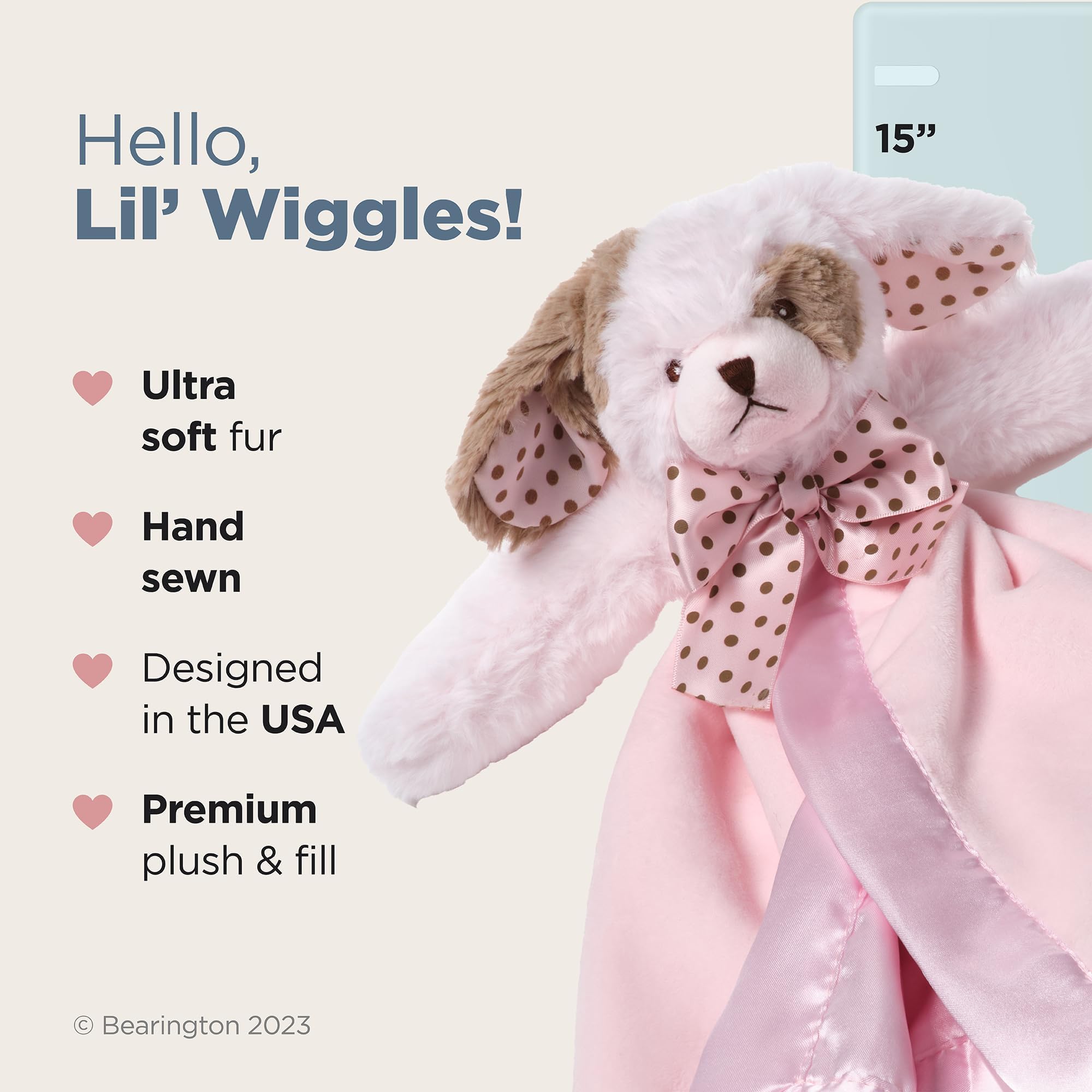 Perfect Cuddle Size: At 15", this lovey is just right for infants and babies to snuggle, and a toddler's treasured plush puppy dog friend