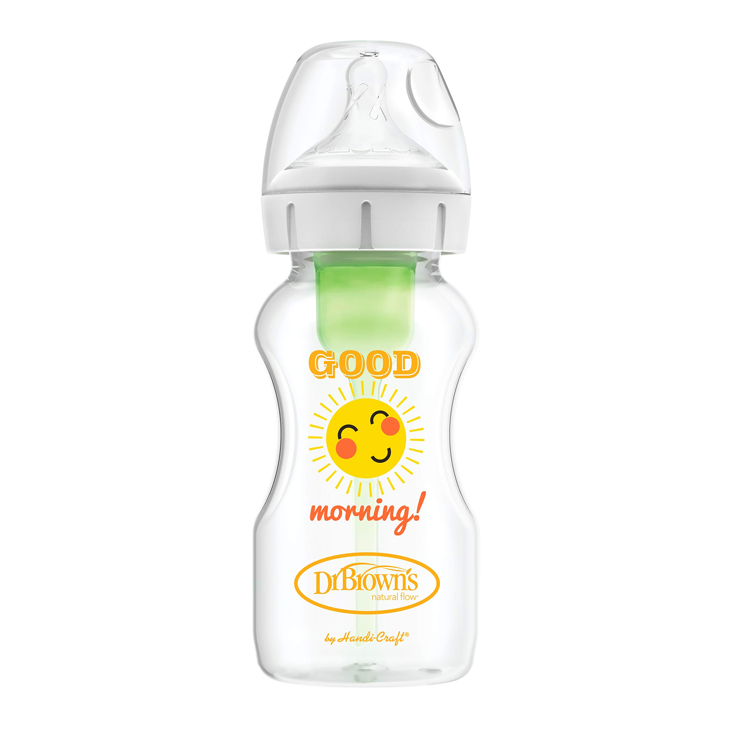 Dr. Brown’s Natural Flow® Anti-Colic Options+™ Wide Baby Bottles, 9 oz/270ml, with Level 1 Slow Flow Nipple, 4 Pack Good Morning/Good Night Gift Set