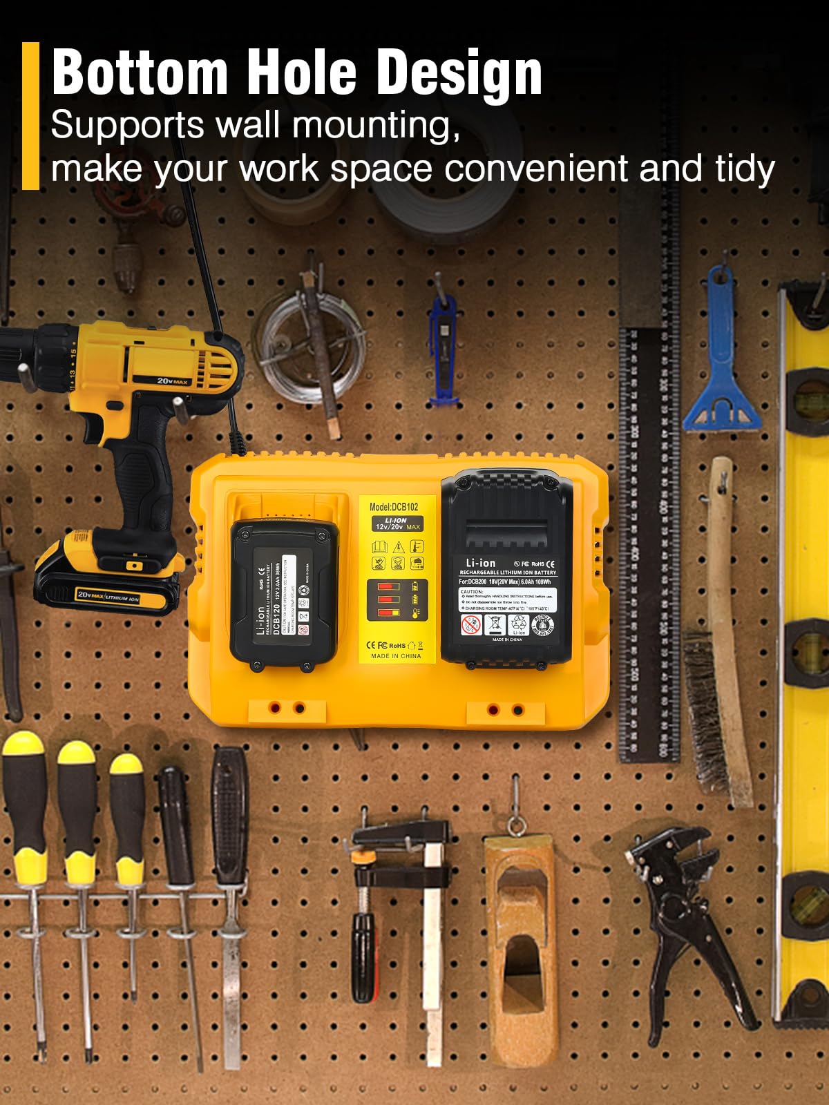 Dual Port Charging: Efficiently charges two batteries simultaneously for Dewalt 12V-20V tools, saving you time and ensuring your tools are always ready for use.