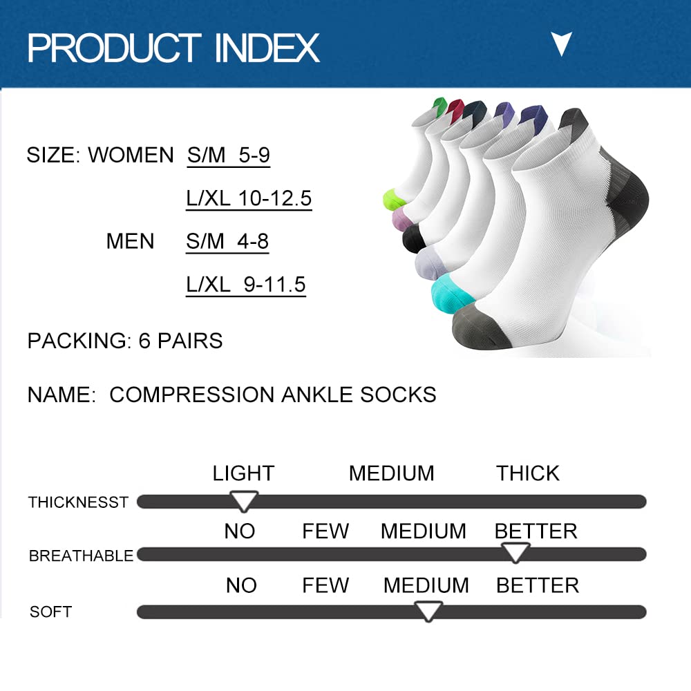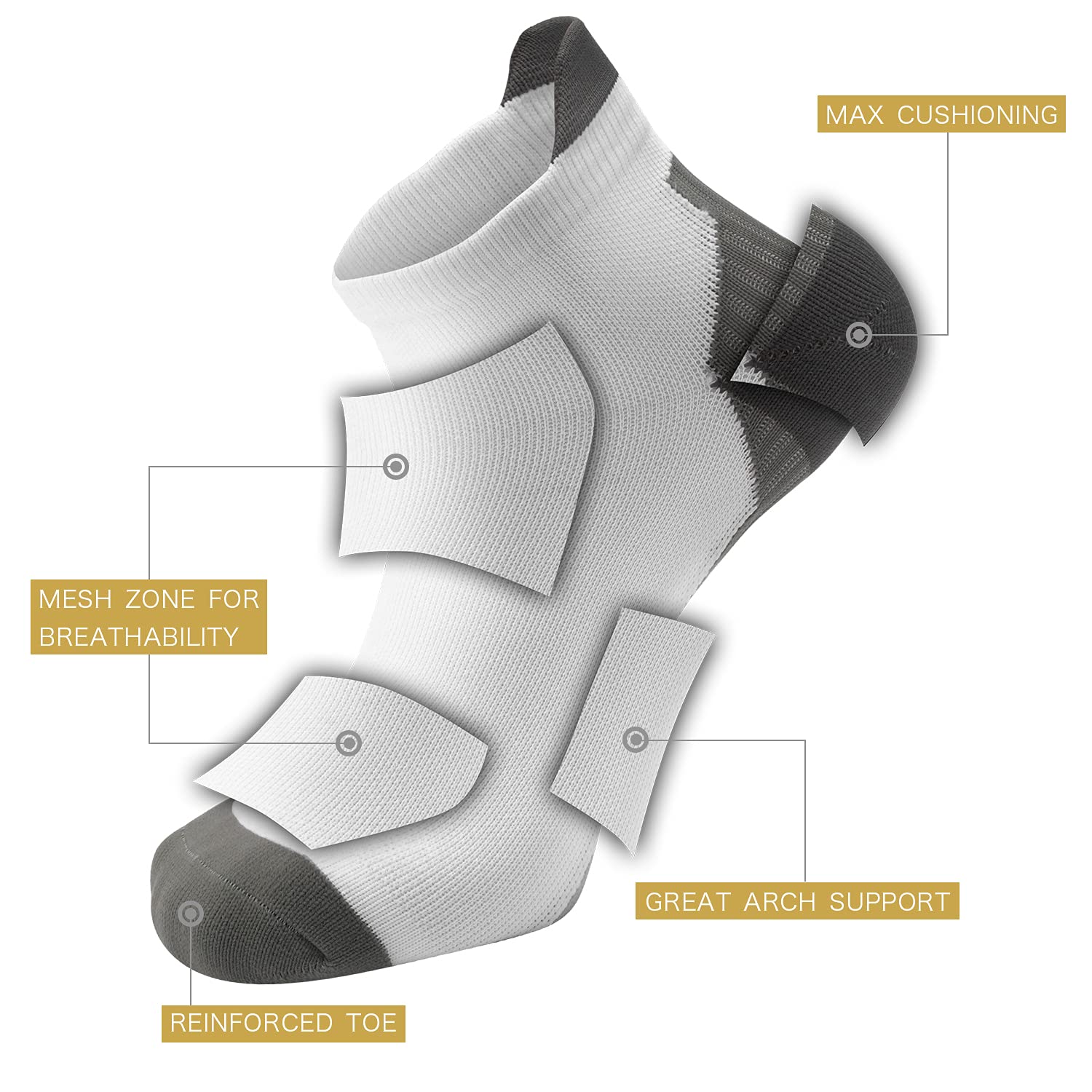 COMFORTABLE METERIAL AND CAREFUL CONSTRUCTION - Stay put Cuffs & Soothing feeling at the bottom and sides of foot, with no pinching seen with lesser quality socks without ankle support. Arch and Ankle Compression to relieve fatigue, Blister Control, Lightweight, Double Welt Top, Heel/Toe Design keeps feet comfortable and dry.