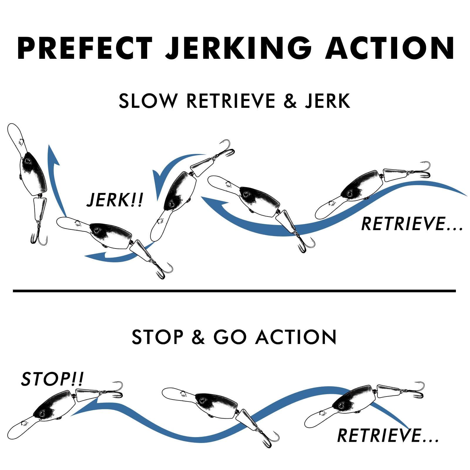 TRUSCEND Jointed Crankbait - This crank bait considered by many to be the best running glide baits, the all-purpose crankbait is equally effective whether cast or trolled. The swimbait is crafted with super durable dual stainless steel hinged joint connection, lightweight and durable plastic body construction enhance the action.