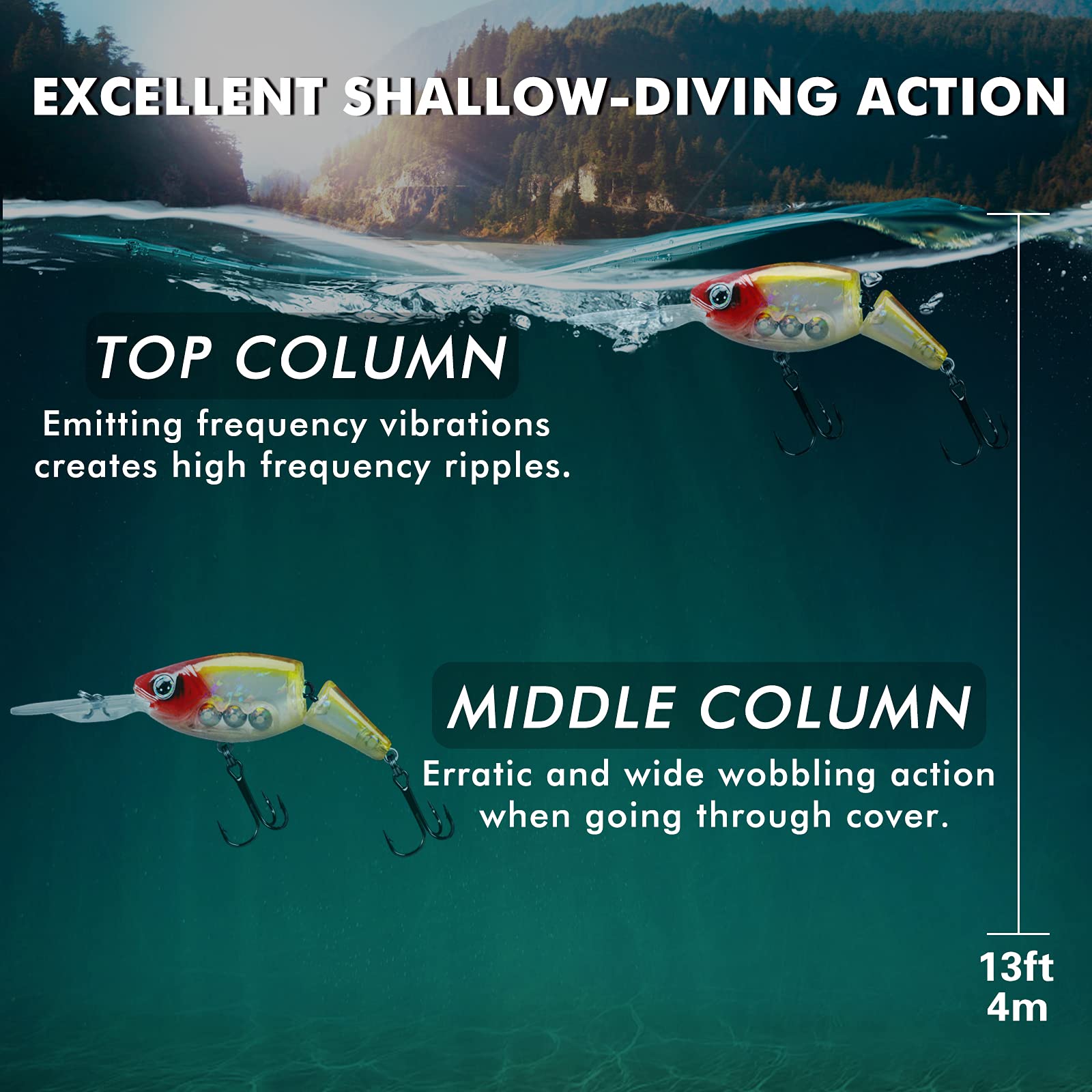 Highly Versatile Performance For Every Angler - This TRUSCEND Jointed Crank baits are most effective when retrieved slowly, where they can give off the illusion they are travelling quickly. They can be widely used to catch largemouth and smallmouth bass, trout, yellow perch, walleye, crappie, pike, muskie, sunfish, roach, snook etc. This swimbait is quite suitable for both inshore saltwater & freshwater fishing and functions well in all water layers.