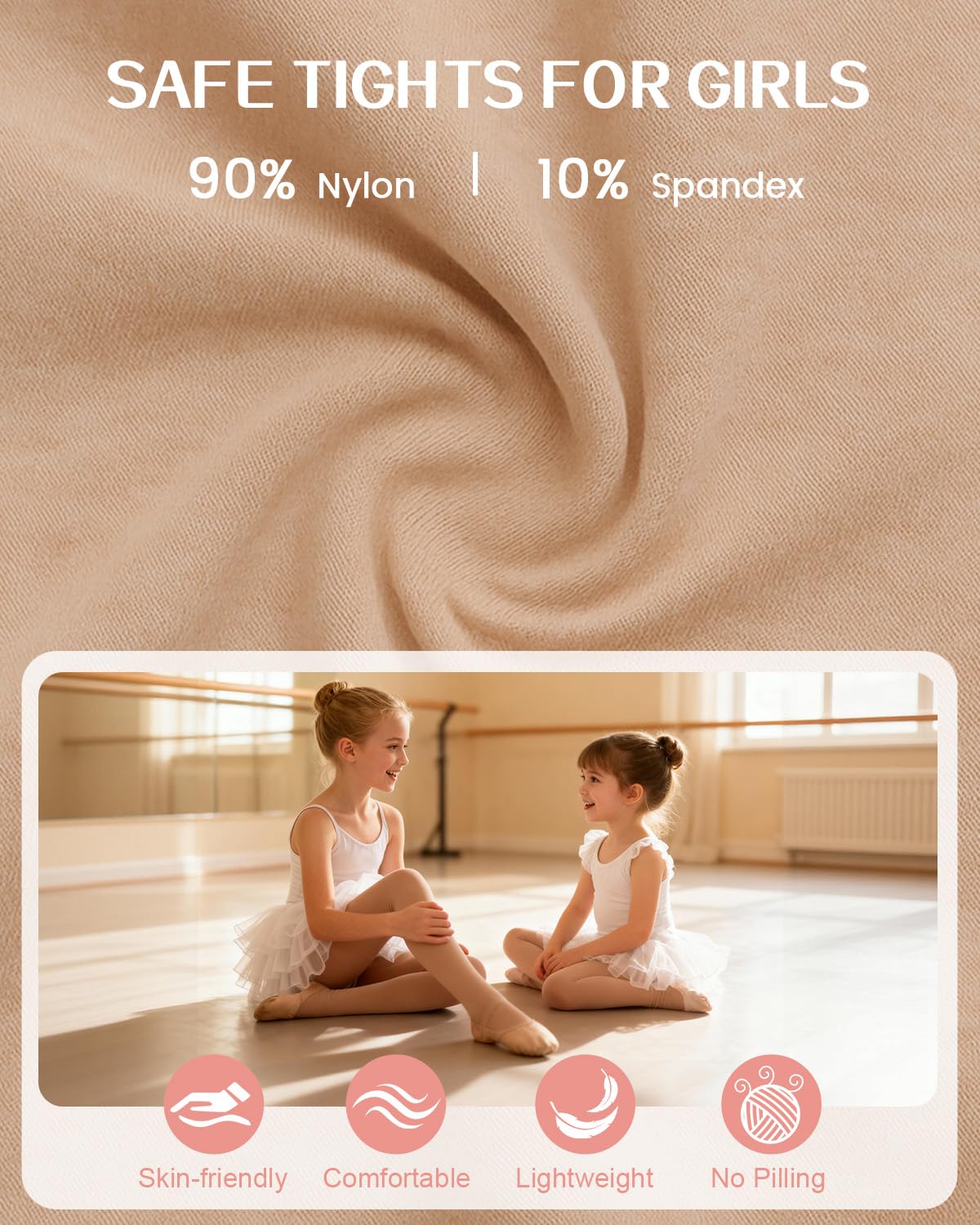 Material: Girls tights are made of high-quality Material(90%nylon,44%spandex).Soft, warm and comfortable dance tights for girl. Not easy to fade.