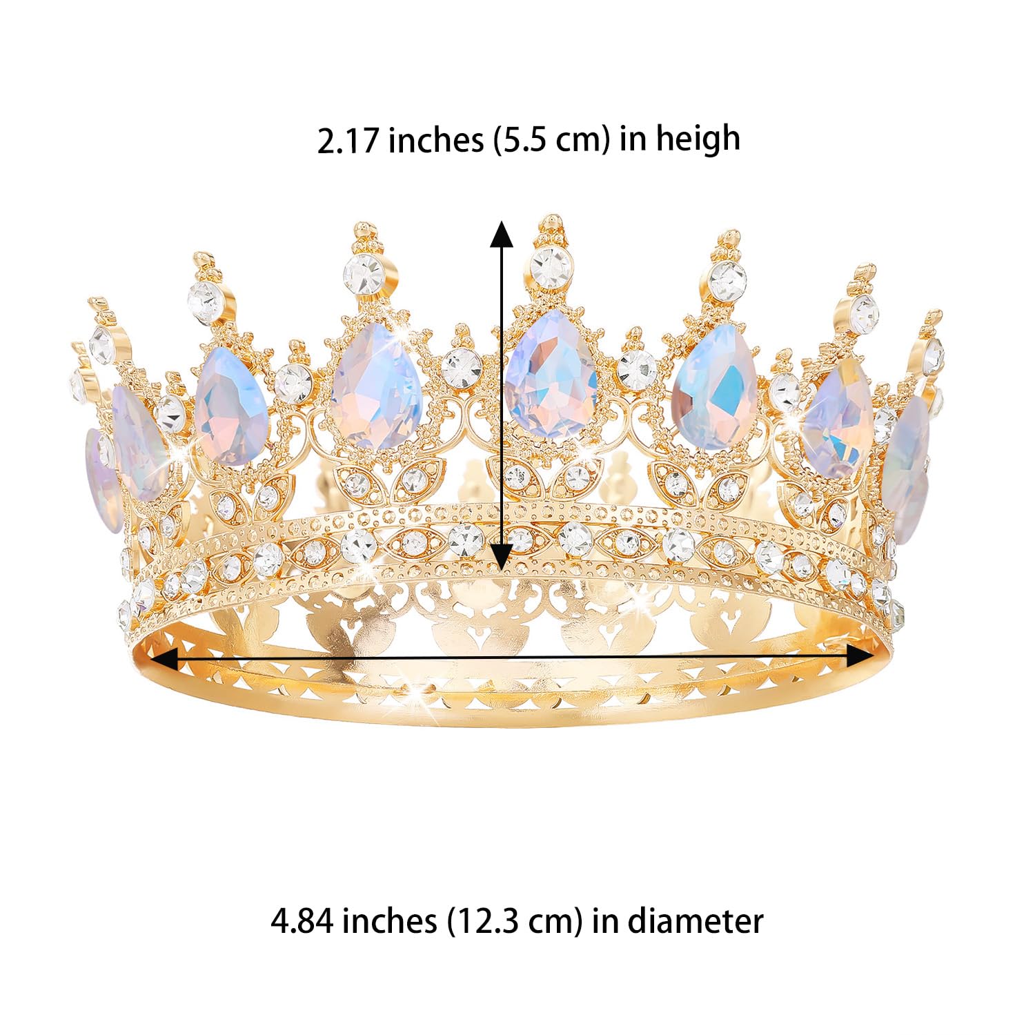 Size and Package: Our tiara crown are suitable for adult women, Diameter about: 4.72 inches, Height about: 2.0 inches, Weight about: 0.234 lb. The package includes four clips to fix the crown on your head and brings you a long and comfortable wearing experience.