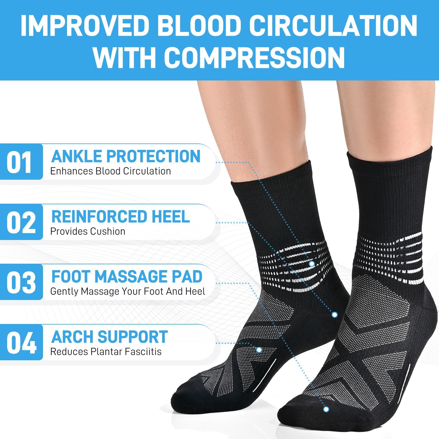 Breathability with CoolMax fiber: Crafted from premium CoolMax fiber, IRAMY compression socks offer excellent moisture-wicking capabilities, keeping your feet dry and fresh throughout the day. Designed with advanced mesh knitting technology, the socks enhance air circulation, providing superior breathability for extended wear. IRAMY crew socks are perfect for everyday activities, including work, running, cycling, and various sports, ensuring comfort and support