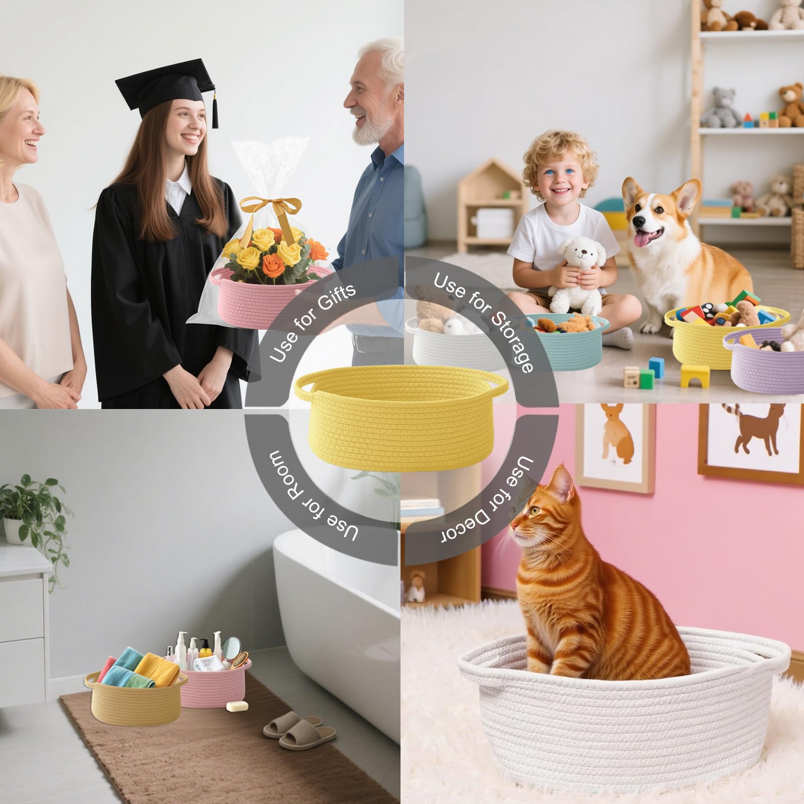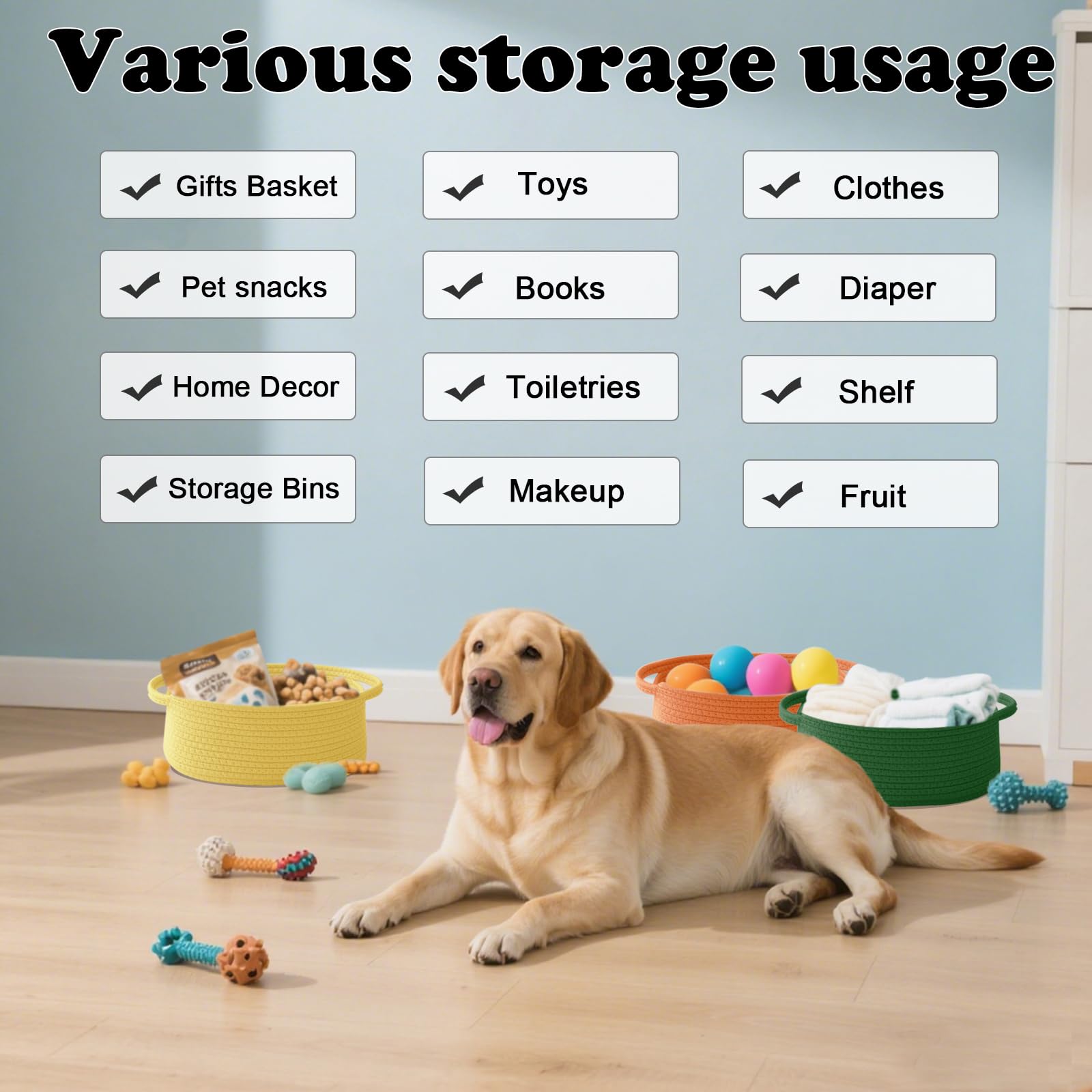 【Multi-Purpose Storage】Woven baskets for storage,bathroom organization, shelf styling,storage basket for organizing snacks, dog cat, magazine, shoes, remotes, books, towels, toiletries, keys and more.Widely used in living room,bedrooms,bathrooms,kids room,and Kitchen