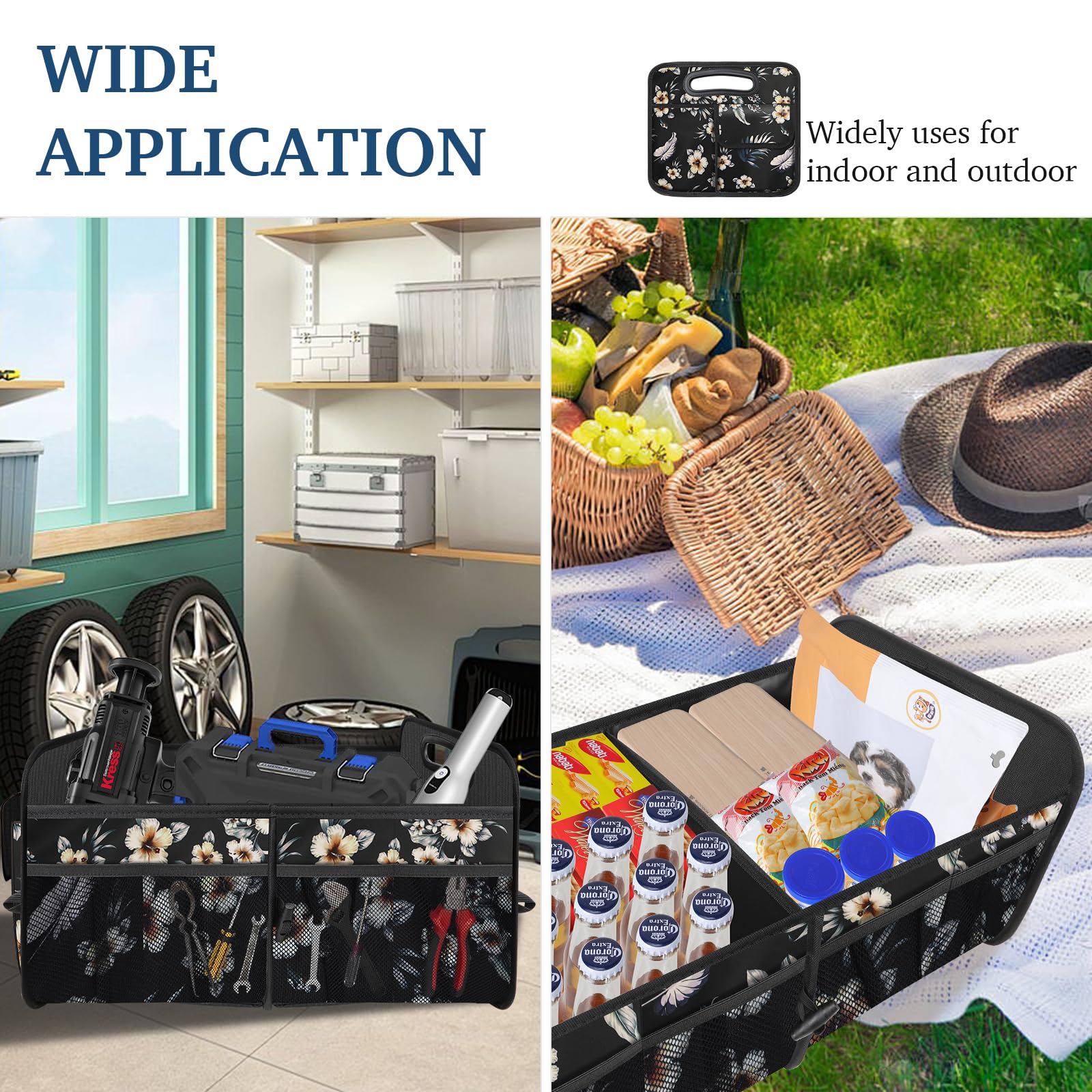 【Trunk Organizer for Car】:This is the optimal solution for maintaining a clean car interior as car accessories. Suitable for all vehicle types, like trucks, SUVs, vans, jeeps, cars, etc., and it's fantastic for transporting and arranging groceries, toys, athletic equipment, tools, and more in your trunk. Eliminate trunk clutter situation with this car organizer.