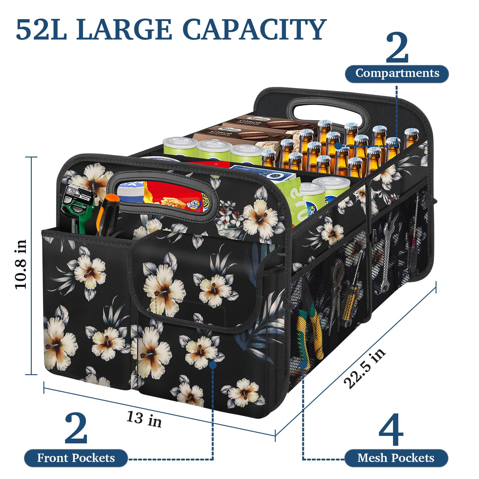 【Collapsible Trunk Storage】:The trunk organizer for suv collapsible multi compartments with removable divider can fold the size that you need in your car interior and fold away when not in use. Foldable and portable.