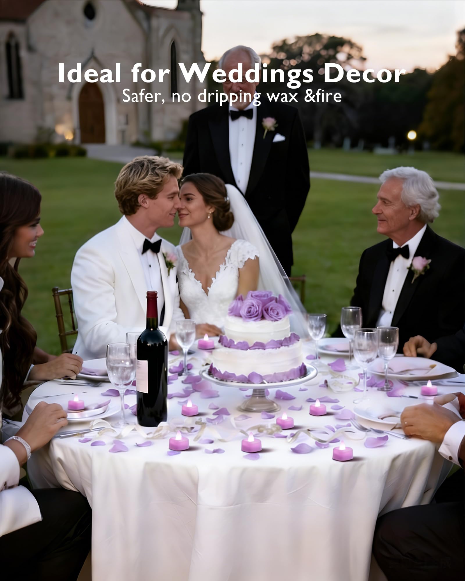 Safe and Long-Lasting: Enjoy peace of mind with our SGS-tested LED tea lights, powered by batteries that last over 100 hours—20 times longer than traditional fake tea candles! (Note: Batteries are small ; and not suitable for children under three.)