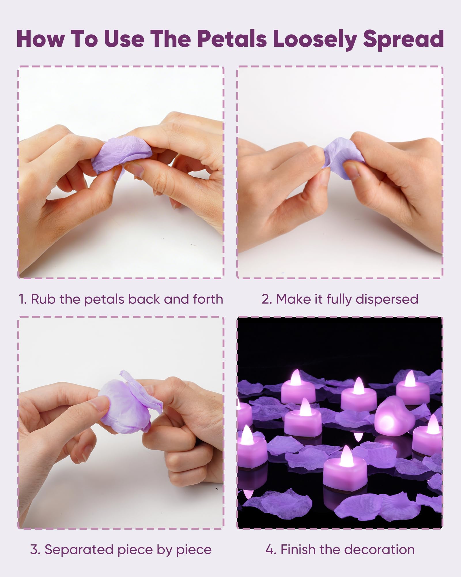 High-Quality Light Purple Artificial Rose Petals: Made from premium, non-toxic polyester, our light purple petals are not only realistic but also easy to clean and odorless. Perfect for purple party decor, weddings, dates, Valentine's Day, and proposals, just separate the petals to set the stage for love
