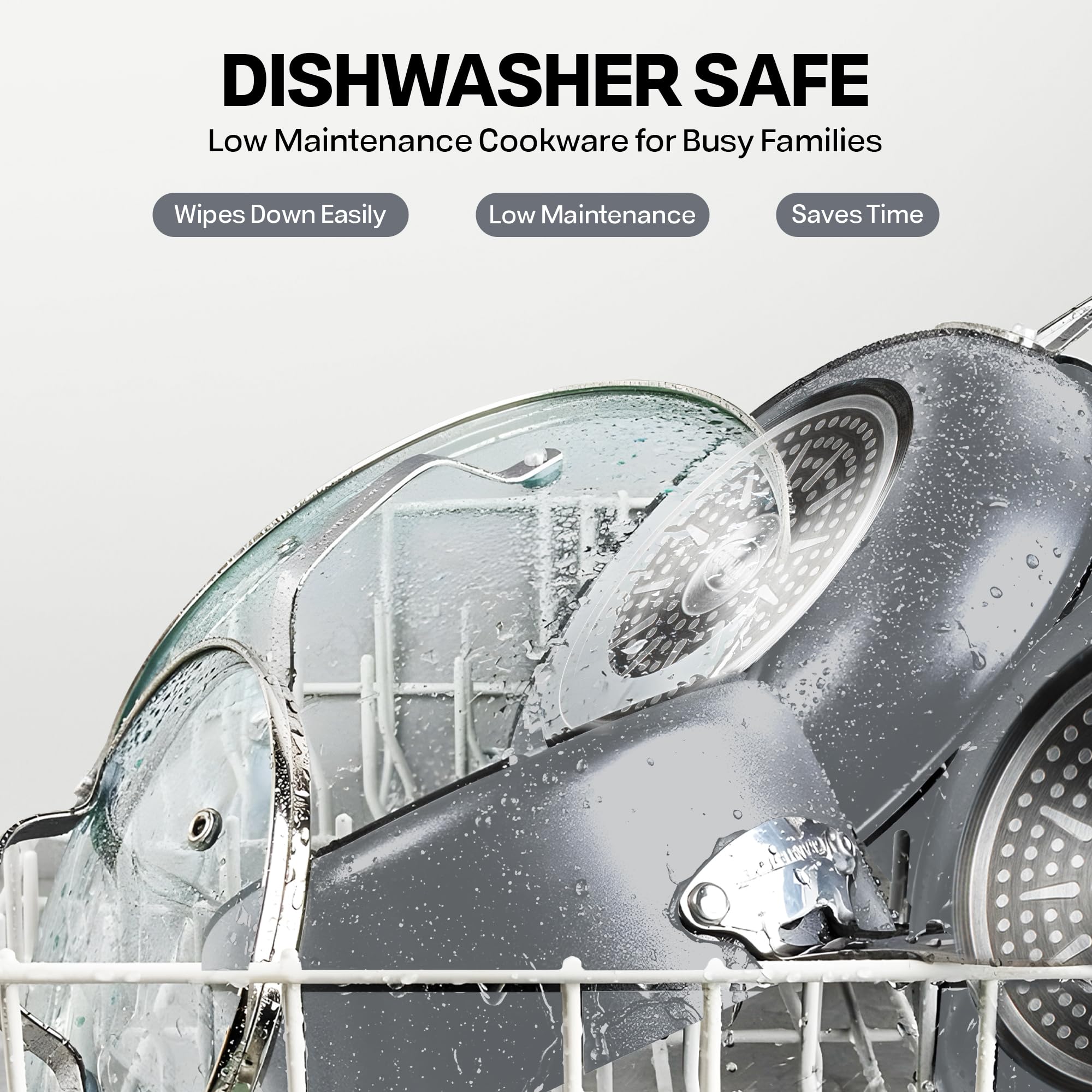 Dishwasher Safe: Spend less time with cleanup! After all the cooking and prepping is done, place cookware in the dishwasher for quick and easy cleanup. Induction Compatible.