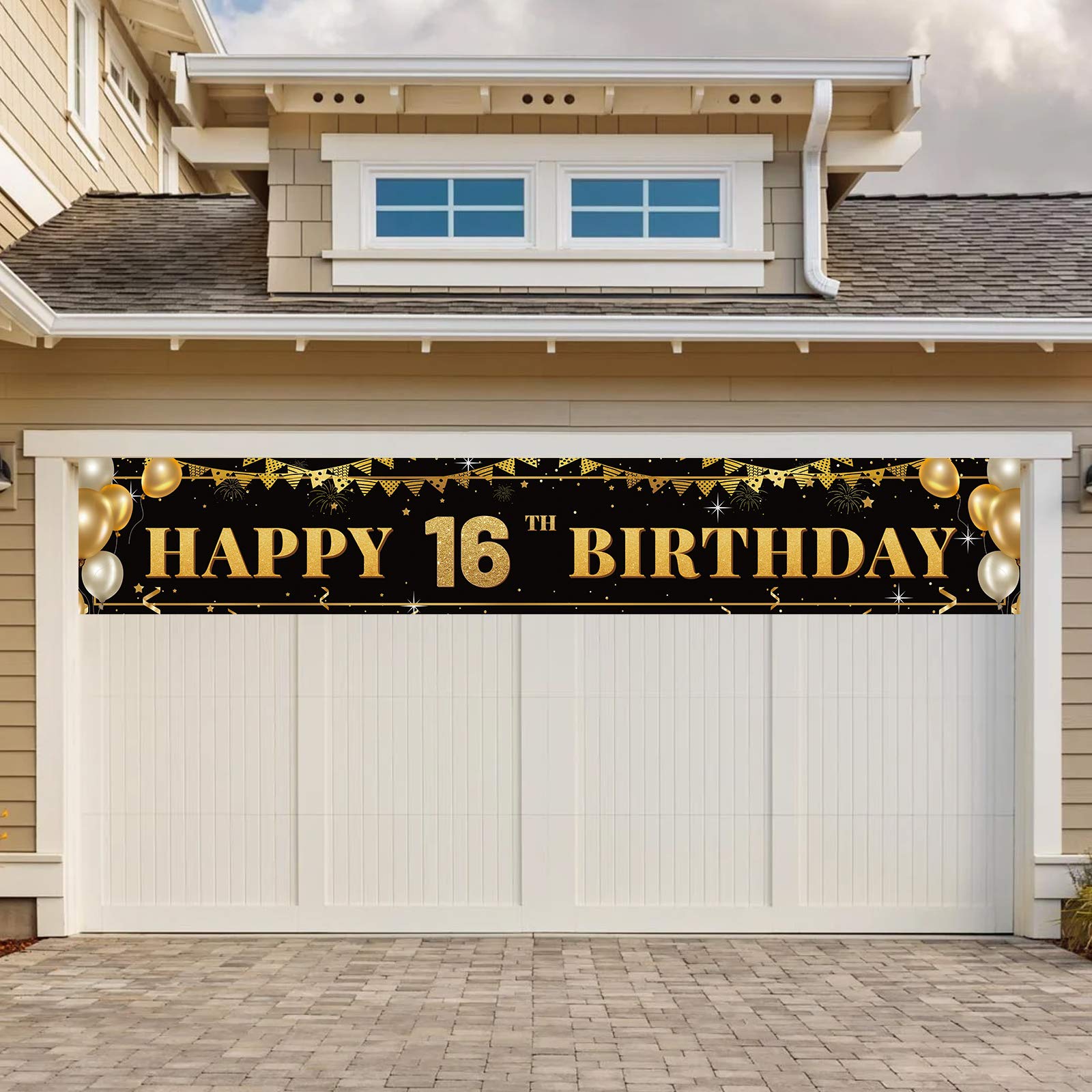 Large size: Package includes one piece large Black and Gold happy 16th birthday banner, measures 9.8 x 1.6 feet/ 3m x 50 cm, large enough for perfect 16th birthday party decorations and for photography backdrops at your party.