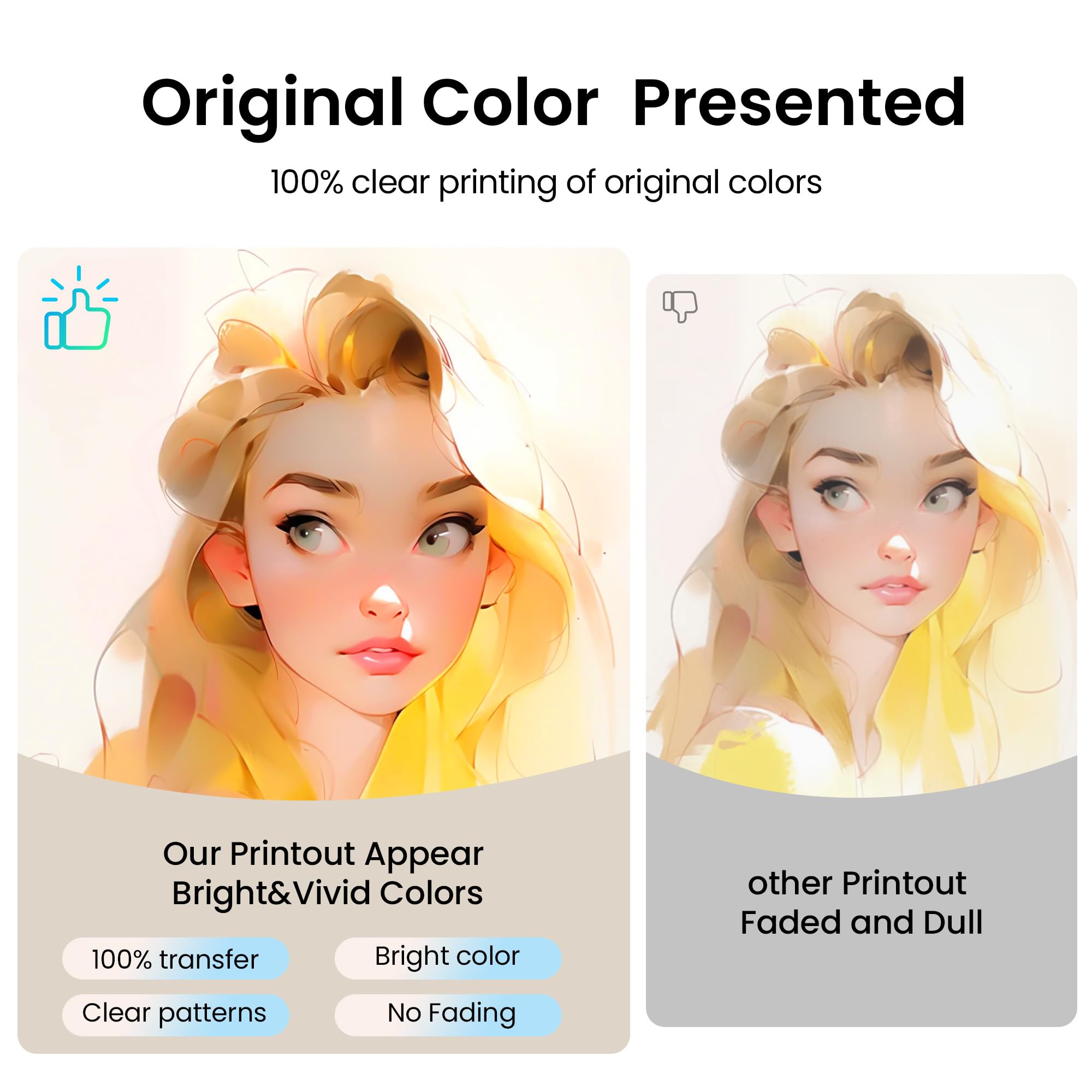 Vivid, Long-Lasting Prints: Enjoy prints with brilliant colors and crisp patterns that resist fading, keeping your designs looking fresh and eye-catching for years to come