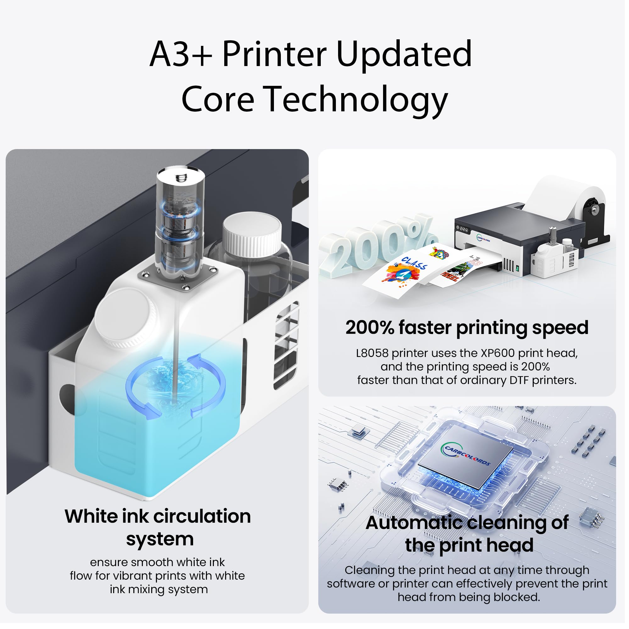 Outstanding Print Quality: The Carbcolords L8050 DTF printer delivers razor-sharp, high-resolution prints with perfect transfer accuracy, ensuring your designs are always crisp and detailed.