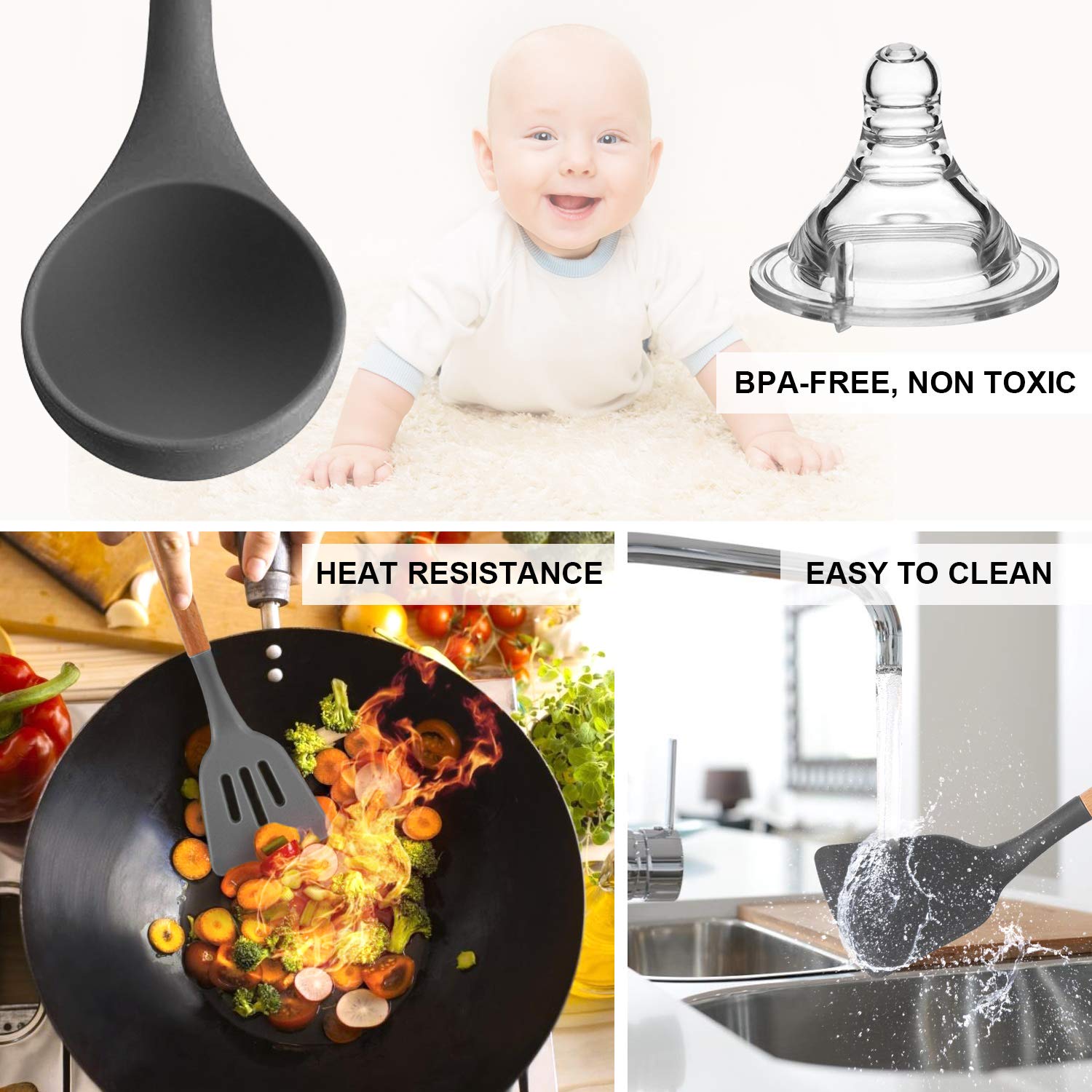 Hight Qaulity Silicone - Approved silicone heads cannot scratch or damage nonstick cooking pots, pans and woks like metals do. This makes them very friendly when dealing with non stick surfaces. Cooking with the non stick silicone utensils set will protect your cookware from any scratches.