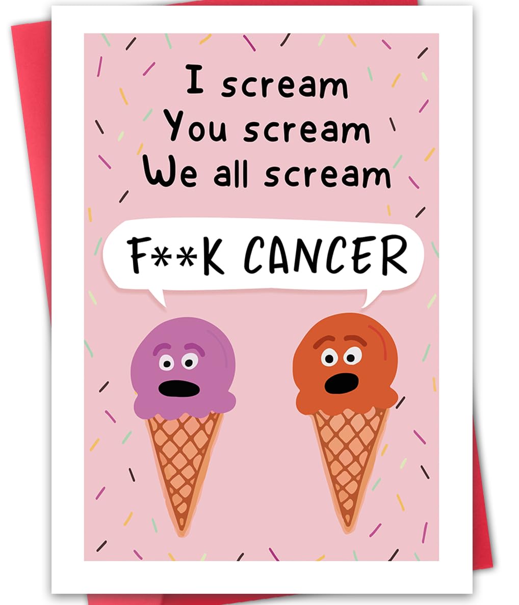BREAST CANCER SOCKS: These black socks are designed to raise awareness for breast cancer and feature colorful fists, ribbons, hearts, and stars. The socks also feature a humorous message that reads "DEAR CANCER YOU PICKED THE WRONG BITCH".