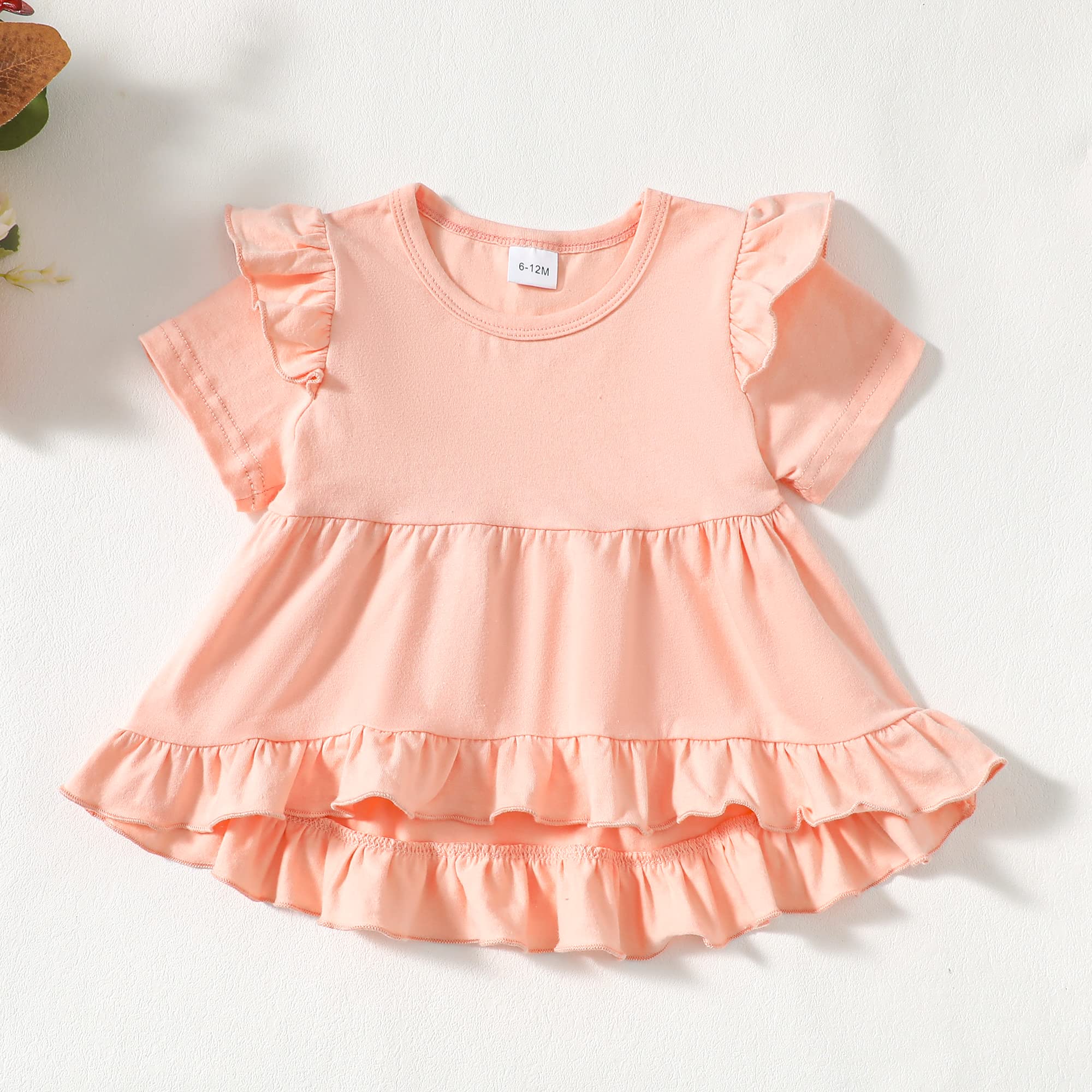 With details we love like ruffle hem design,cute print,as well as elastic waist,this cute girl clothes is sure to brighten up your baby girl's day. All the details make the perfect gift for baby.