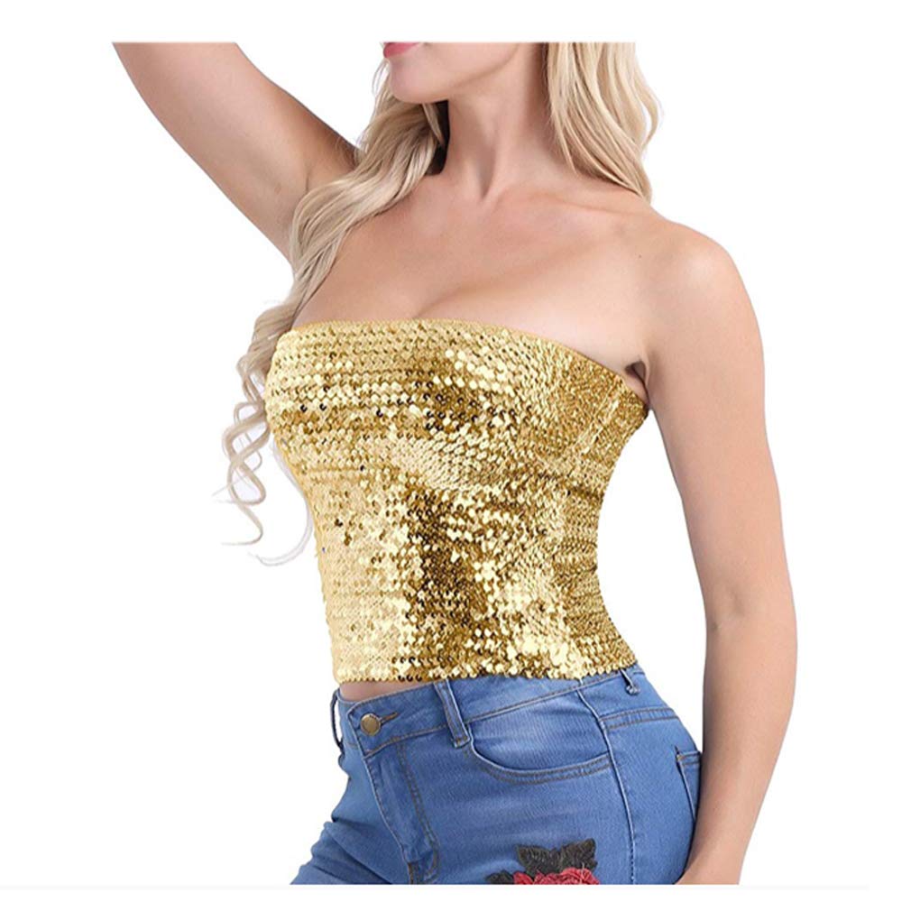 Easy to put on and out. This glitter tank top is made with elasticity material.