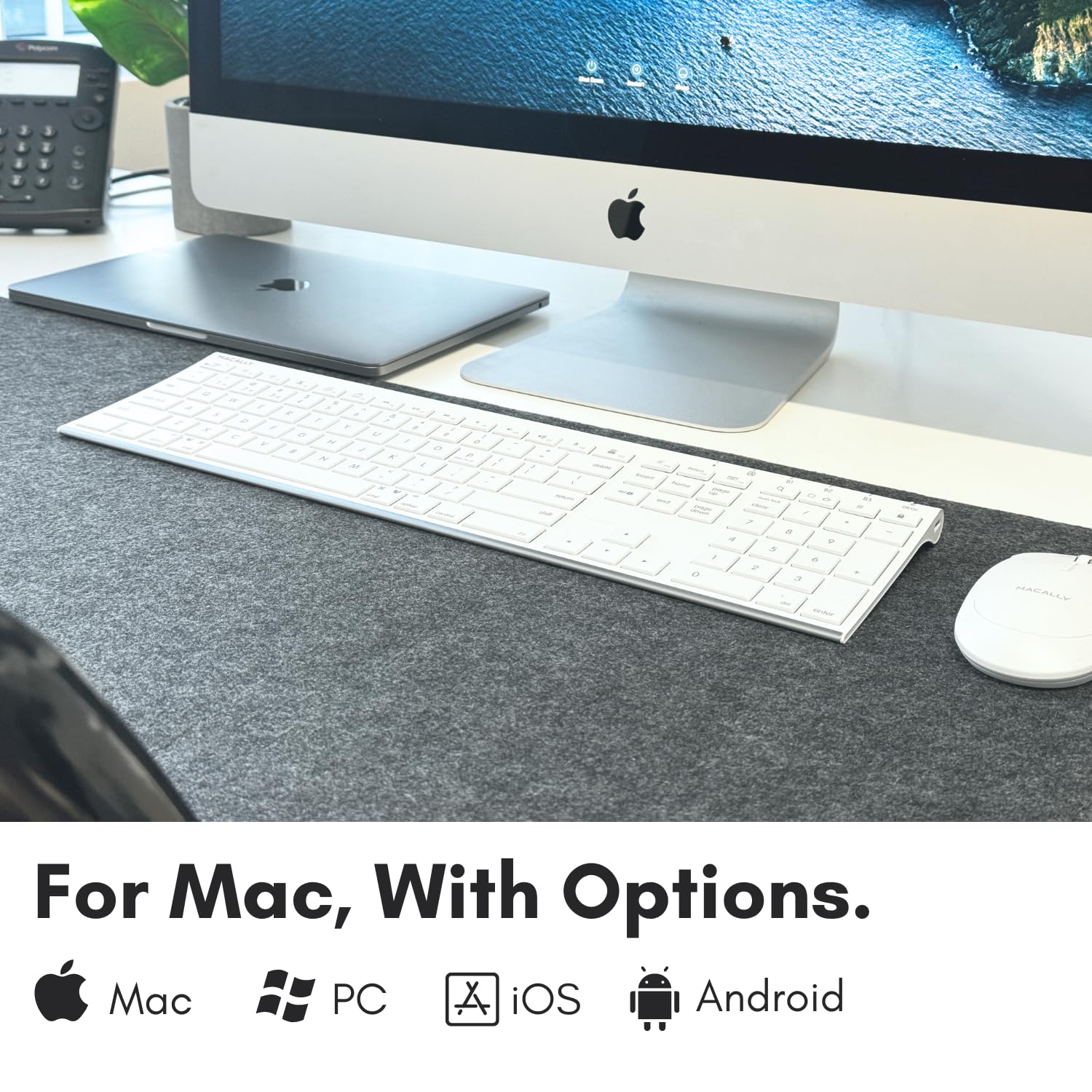 Multi Device Wireless Keyboard for Mac or Windows: Simultaneously connect up to 3 Bluetooth devices for maximum productivity in your work, social, and creative environments with our wireless extended keyboard
