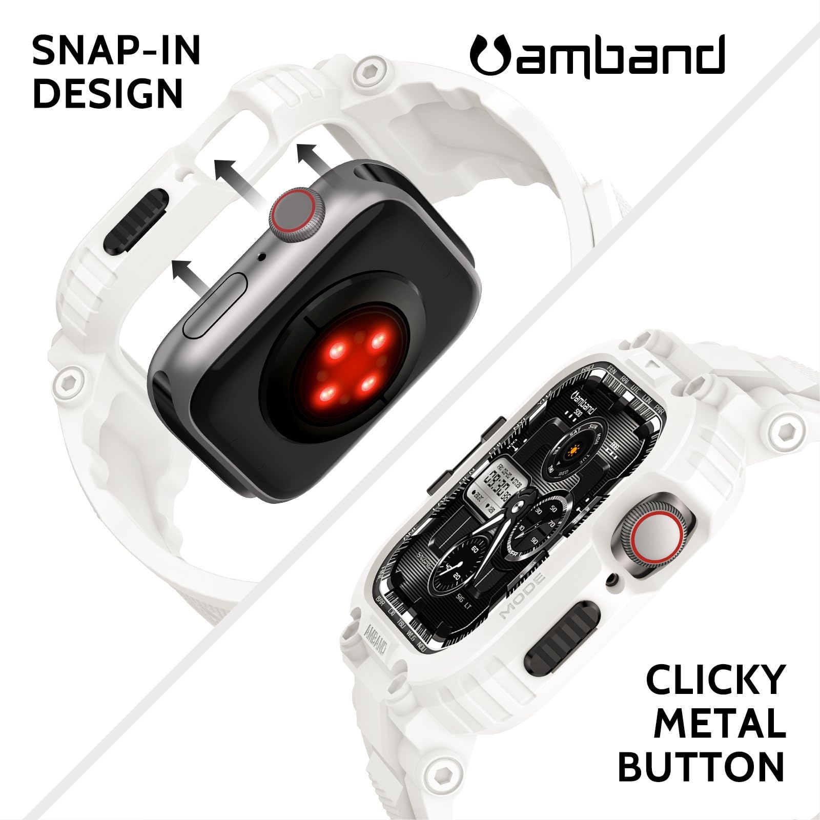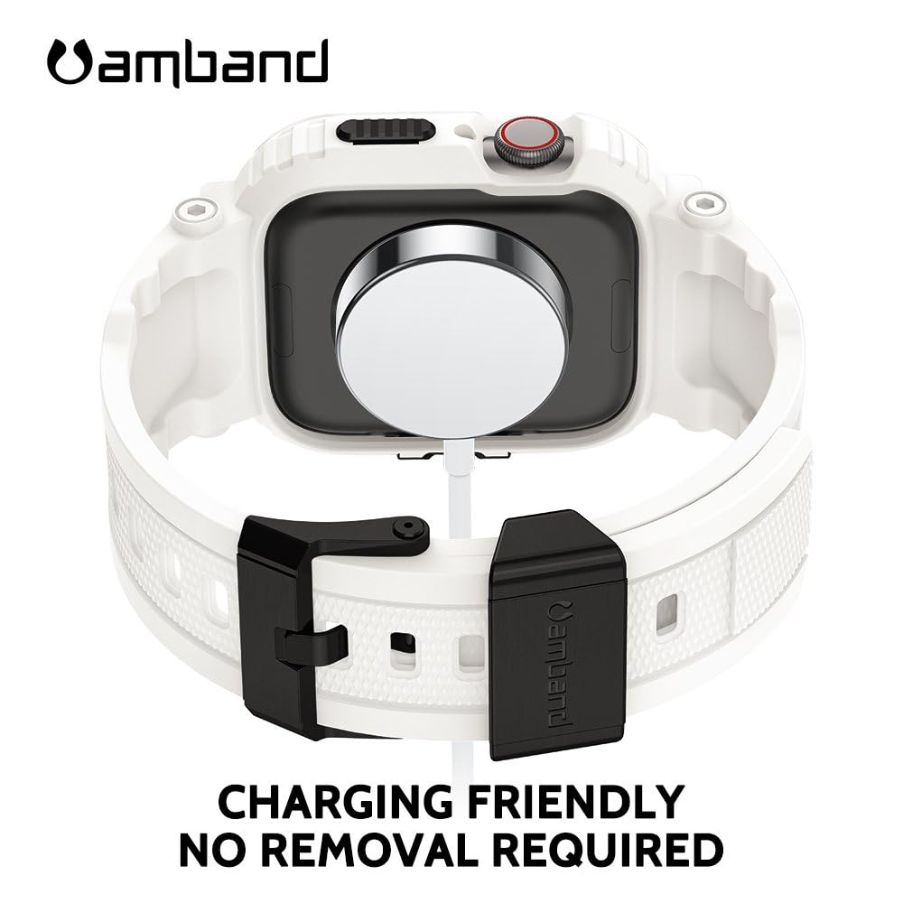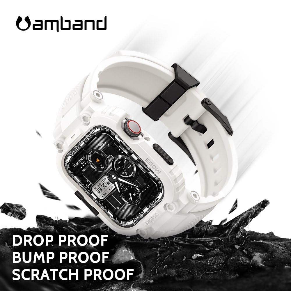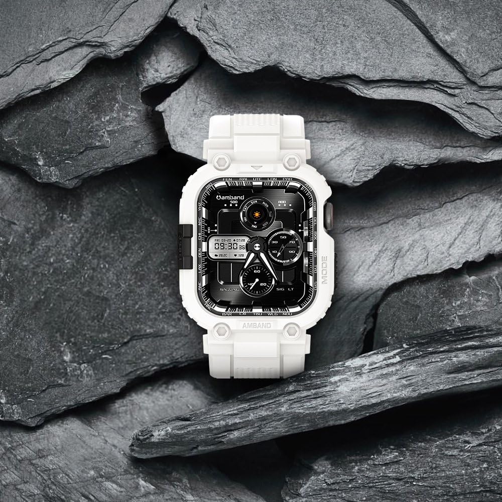 Description amBand M1 Sport Case with Band for Apple Watch Ultra 3/2/1 & SE 3/2/1 & Series 11 10 9 8 7 6 5 4 3 49mm 46mm 45mm 44mm 42mm 41mm 40mm 38mm, Shockproof & Scratch Resistant Rugged Bumper for Men