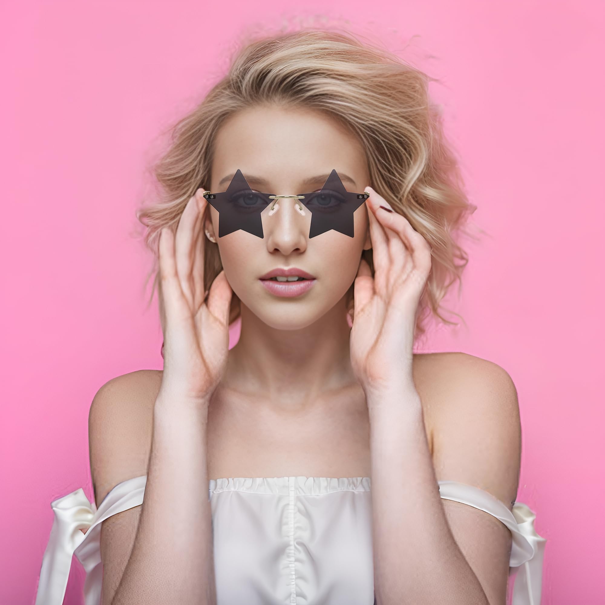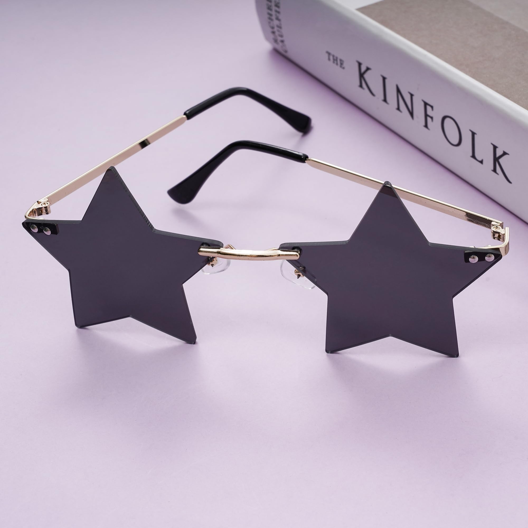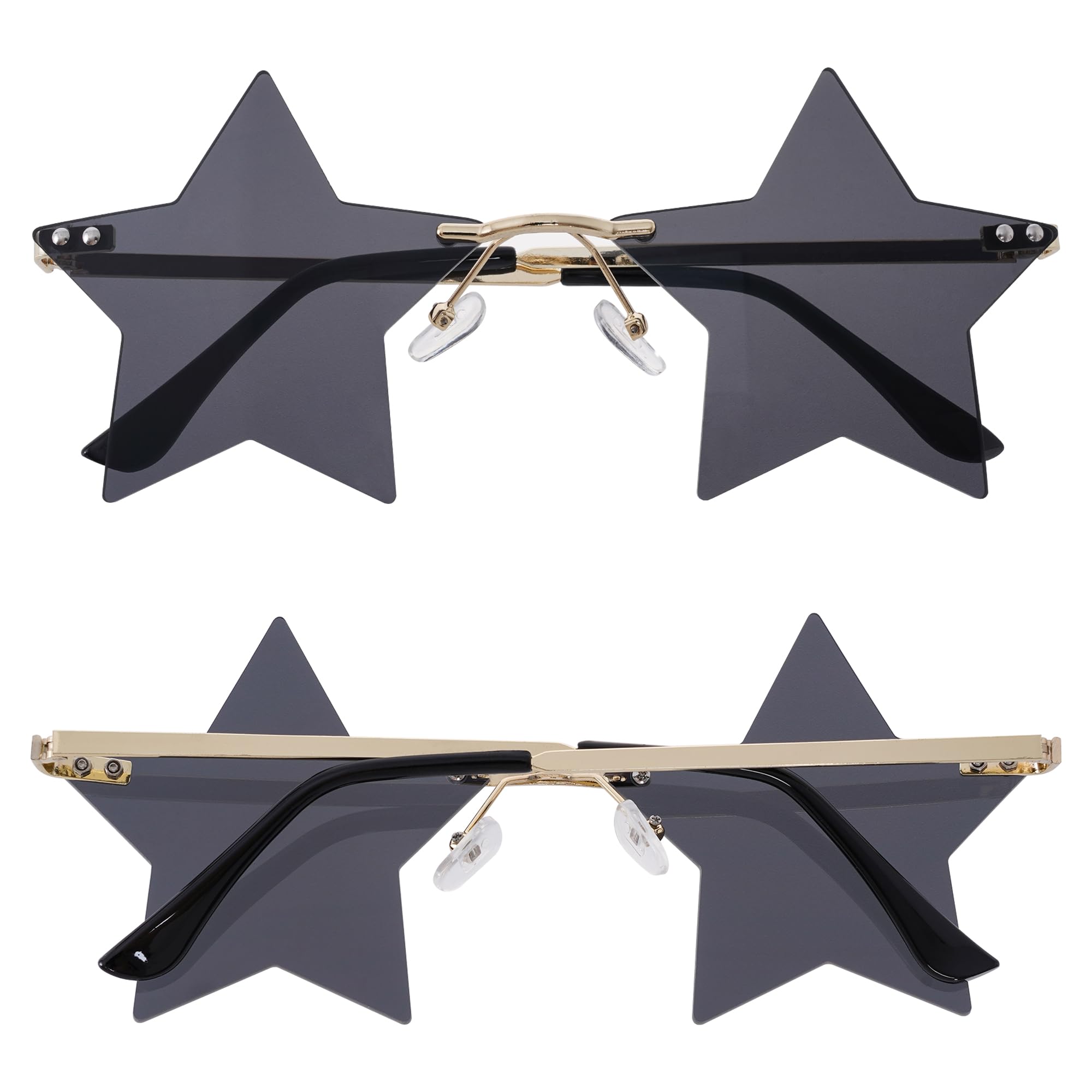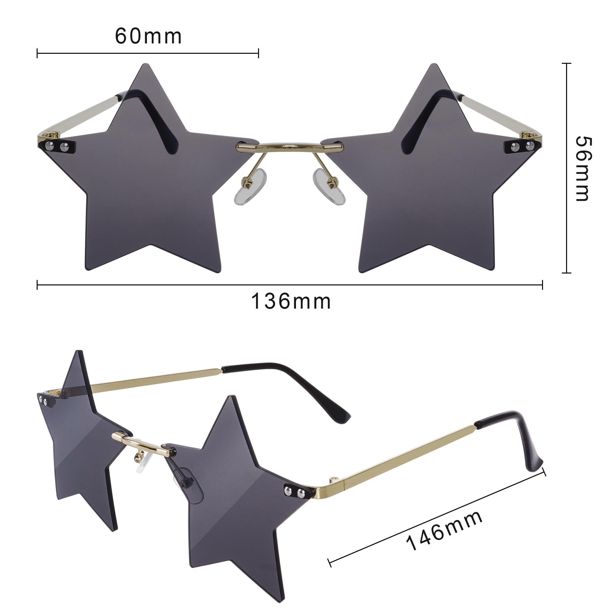 【High-Quality Sunglasses】Made from high-quality PC and metal material, the star sunglasses are long-lasting. The rimless design gives them a sleek and modern look, while the pentagram pattern provides an edgy and unique style.