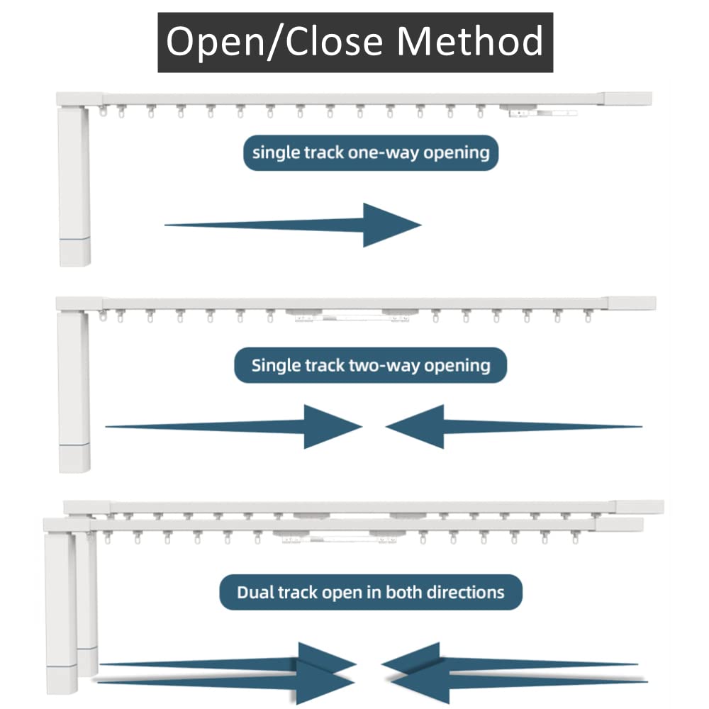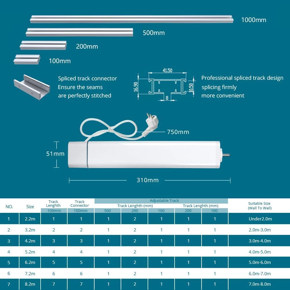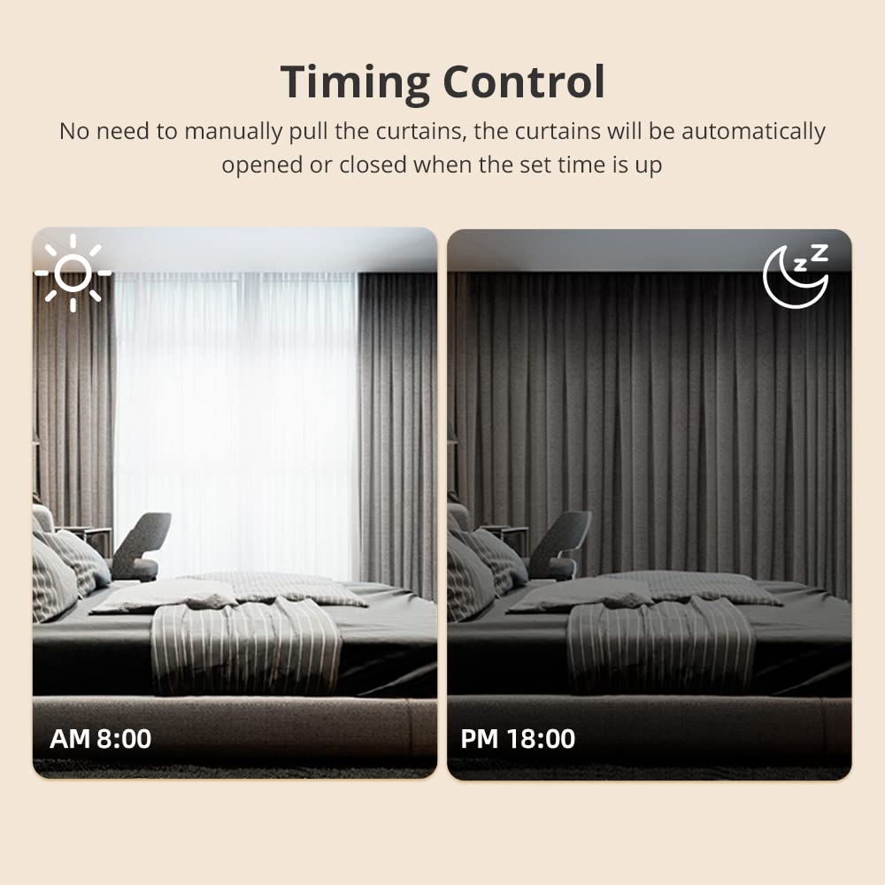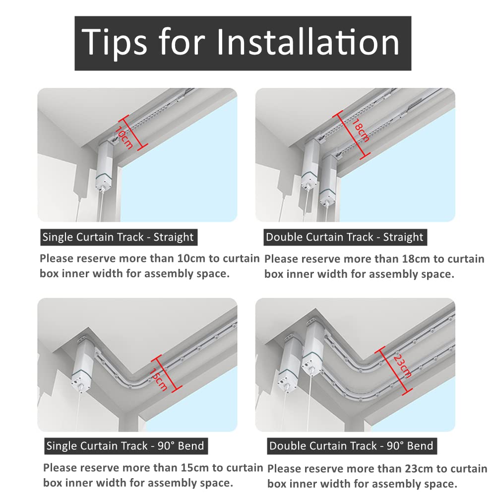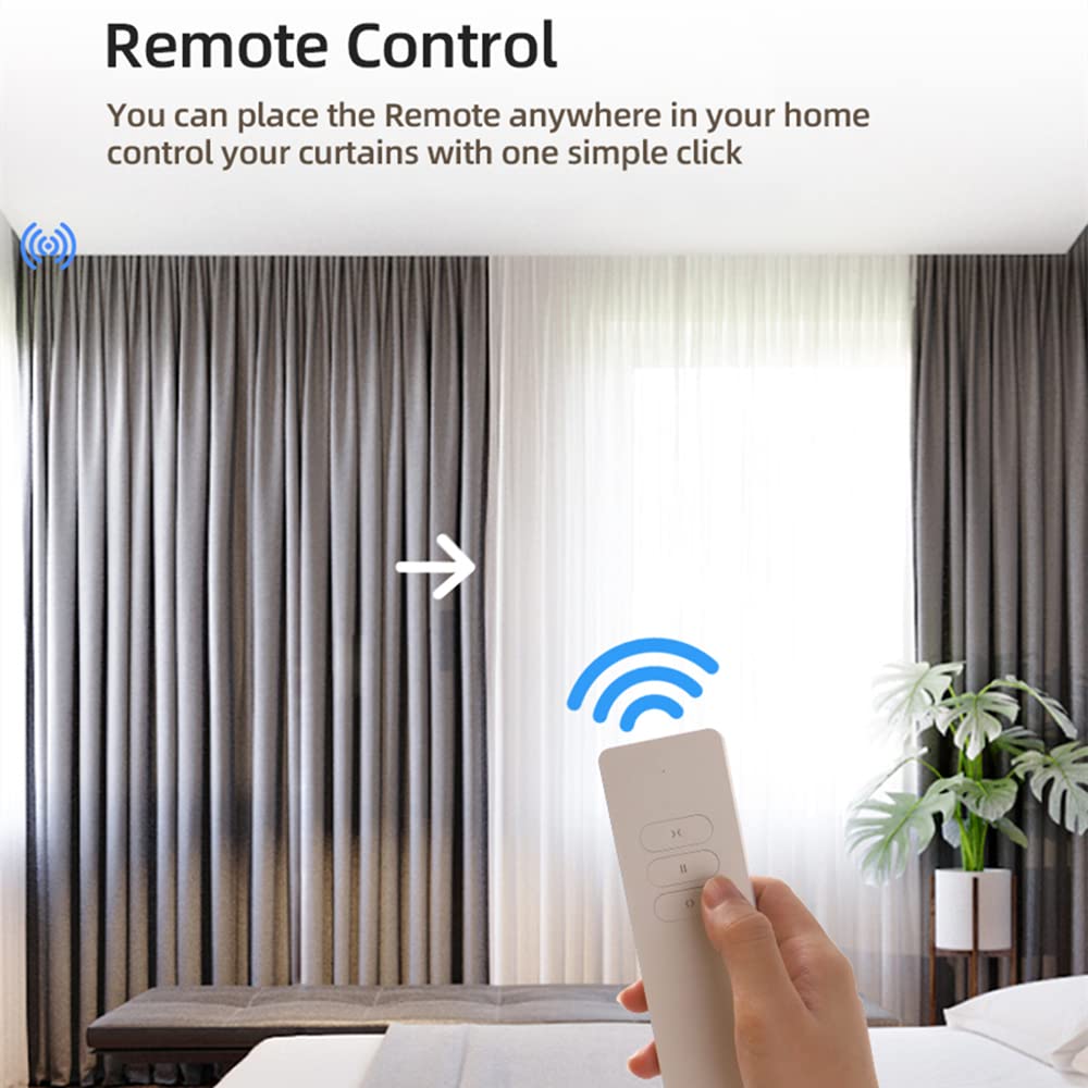 With 1Meter DIY Tracks: 0.5m*1+0.2m*2+0.1m*1, Packed with all-in-one curtain system. (No curtain fabric is included) Set the schedule previously via App, the curtain will be open and closed automatically.