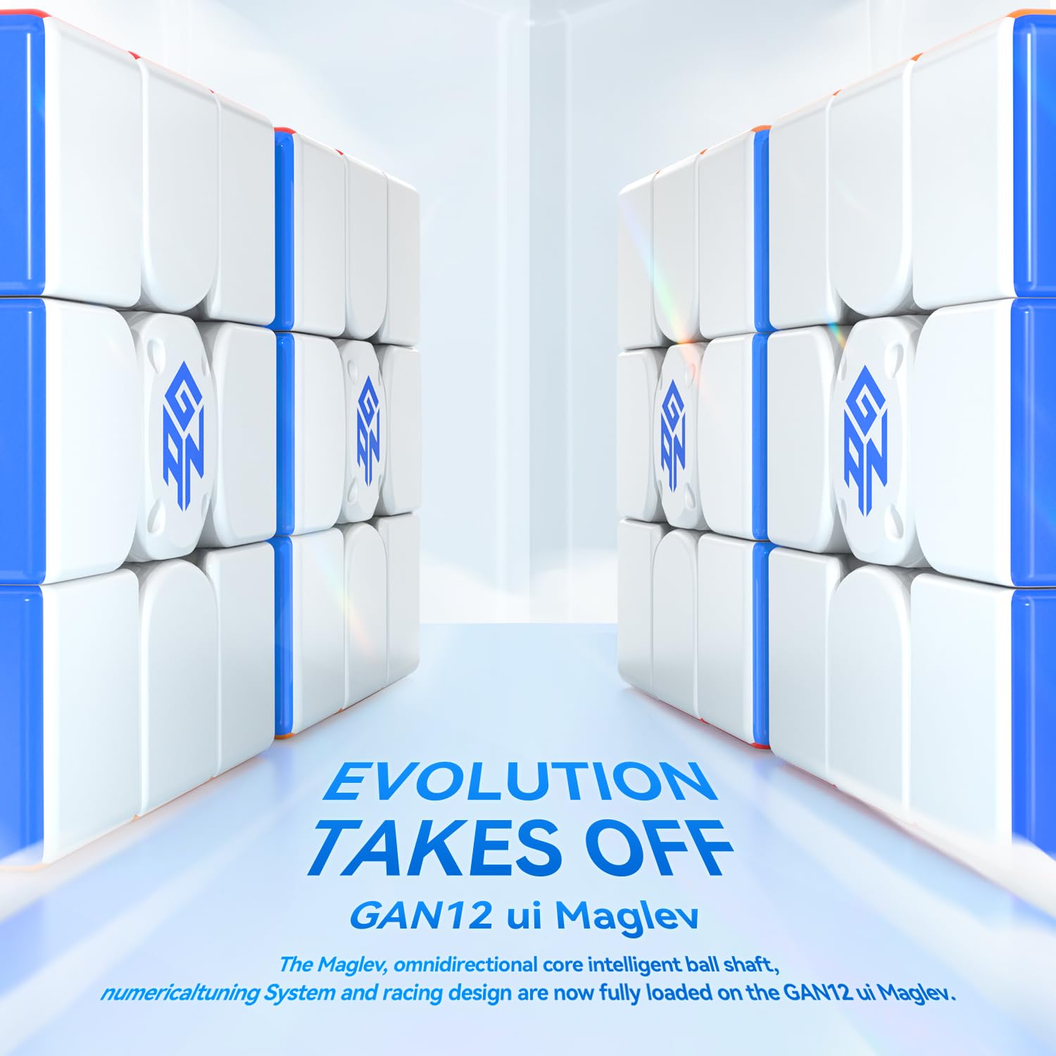 The New Era of Maglev Smart Cube: Adopting the Omnidirectional core Smart ball shaft 2.0 and equipped with 8 omnidirectional axis magnetic particles, each block contains 76 magnetic particles. GAN 12 ui Maglev opens a new era of suspension in the smart speed cube race
