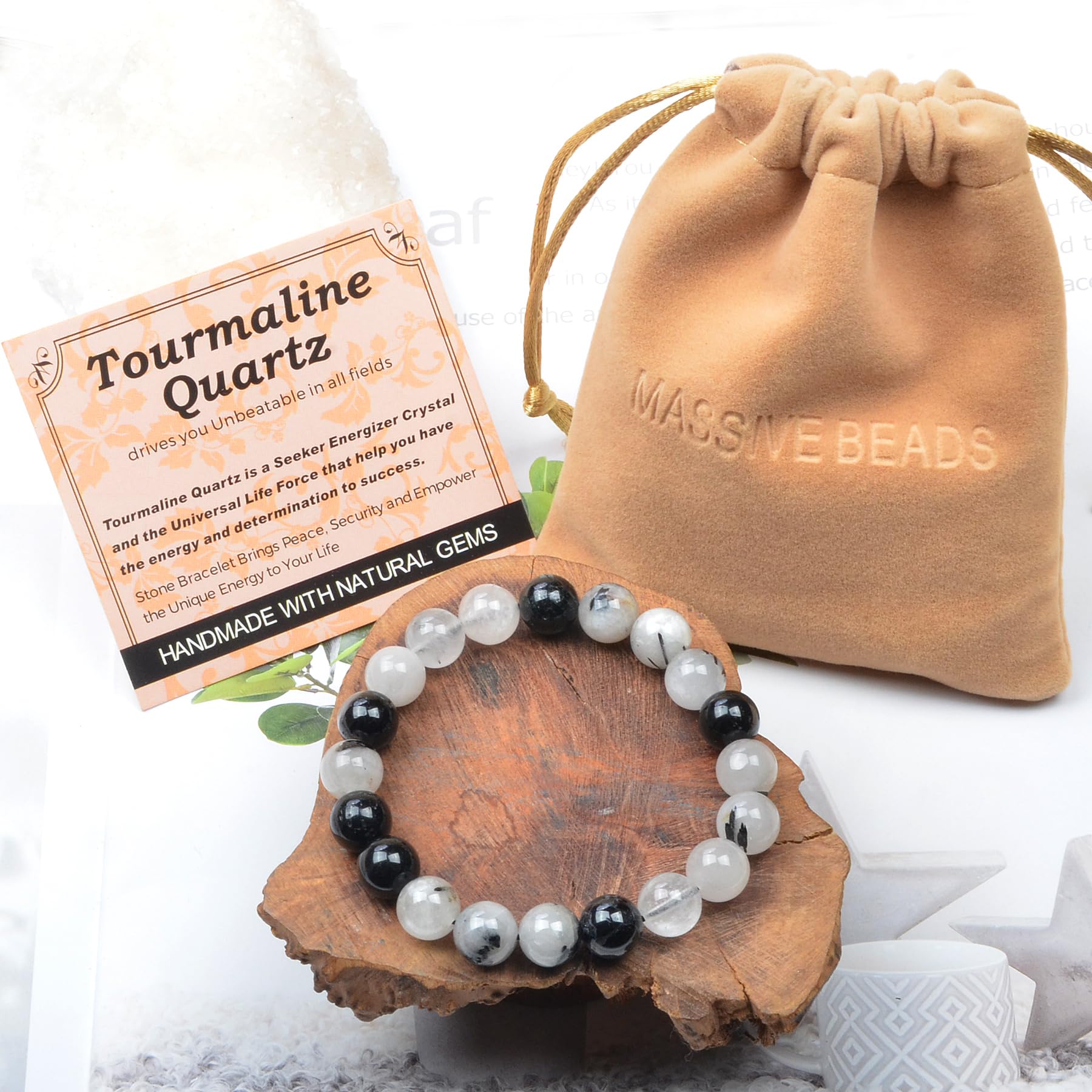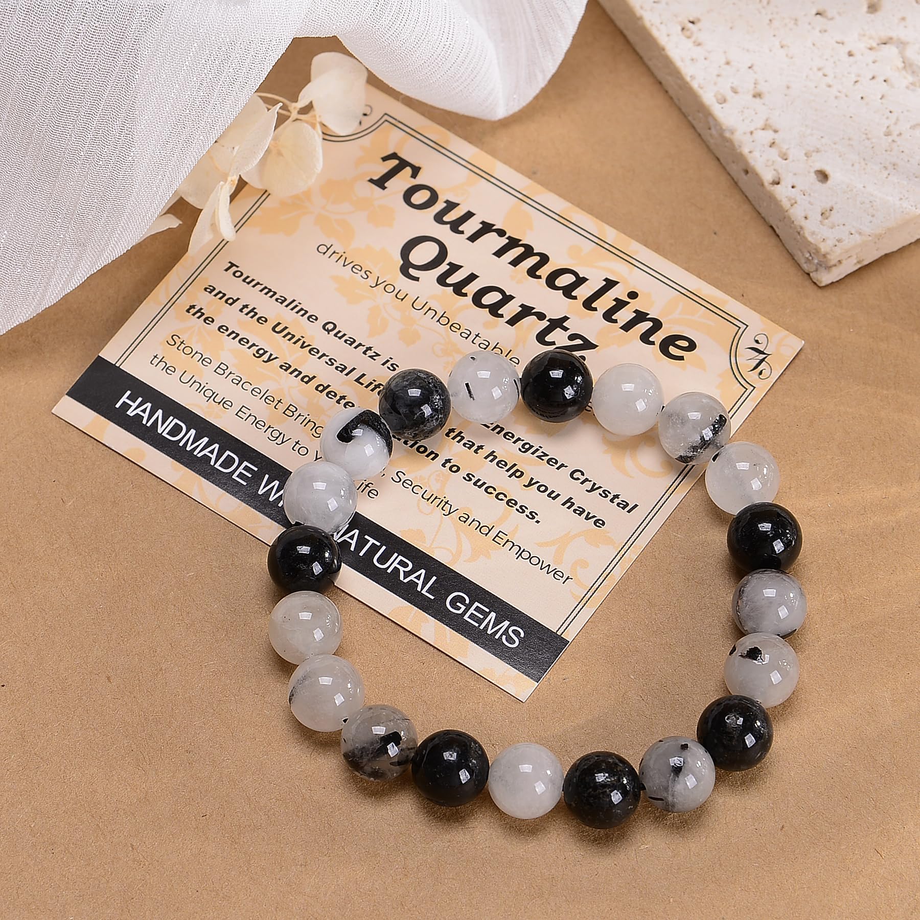 💝 [High Quality Materials] Material: Tourmaline Quartz; Size: 10mm(diameter); Adjustable Handmade Bracelet.