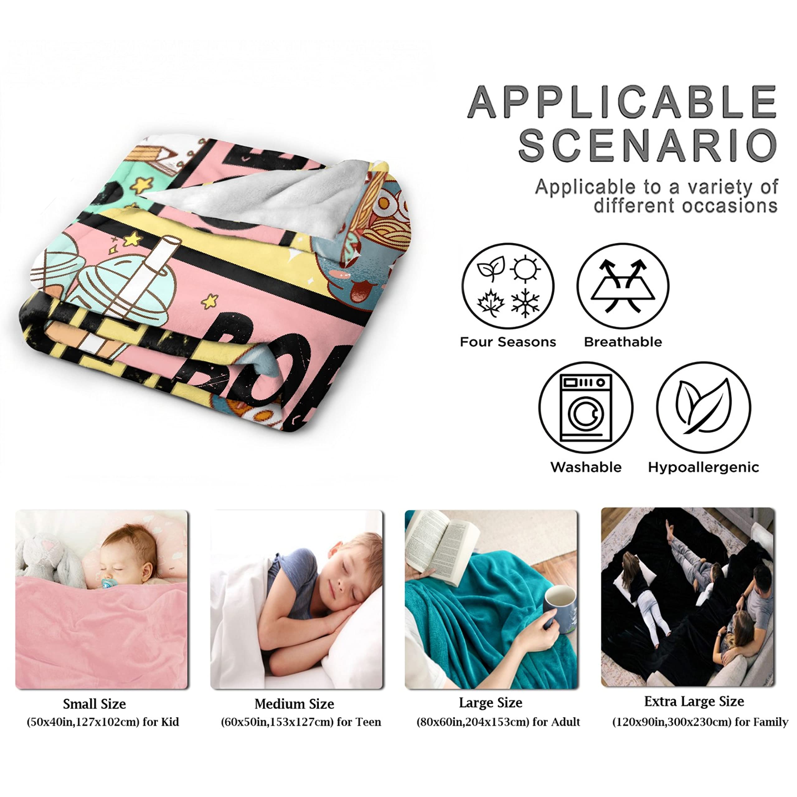 BLANKET SIZE -The Blanket Can Not Only Be A Practical Product, But Also Printed With Unique Patterns Or Interesting Words. 50x40in Is Suitable For Kids; 60x50in Is Suitable For Girls, Boys And Backpacking; 80x60in Is Suitable For Women Men;120x90in For Whole Family To Watch TV Togeth