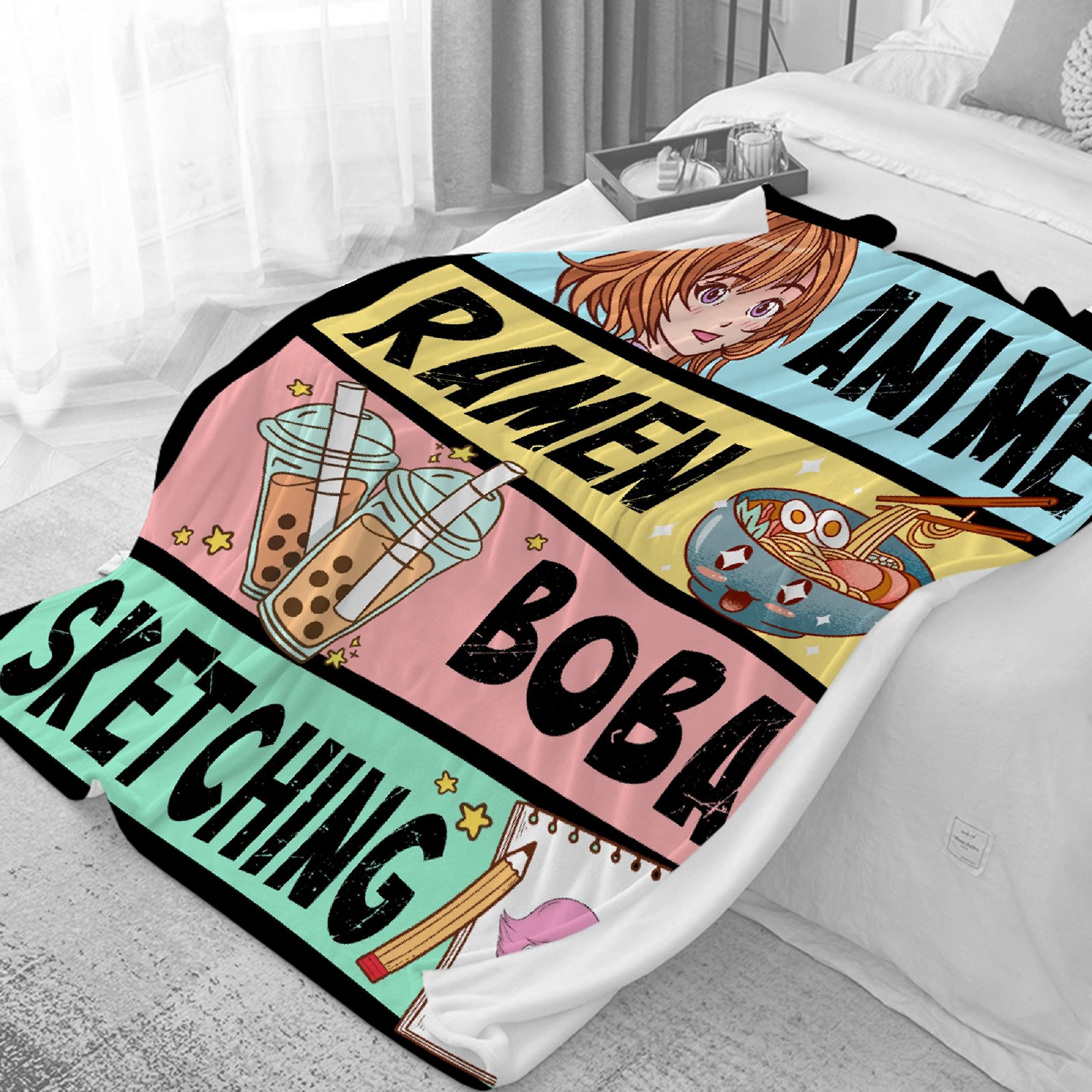 LIGHTWEIGHT FLUFFY FABRIC - These Anime Ramen Boba Sketching Blanket Are Made Of 100% Polyester Microfiber Fabric.Suitable For Spring/summer/autumn/winter.No Shedding And Fading.Good Choice For Gifts From Family And Friends.