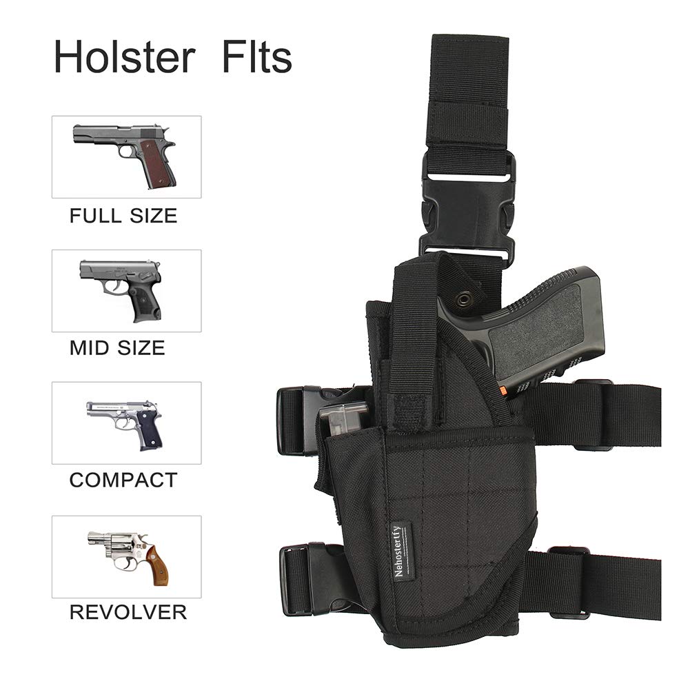 ADJUSTABLE: Drop Leg Holster can be fully adjustable for leg and fits 19-27” of thigh circumference. Fully adjustable wrap-around high thigh universal design for men and women.