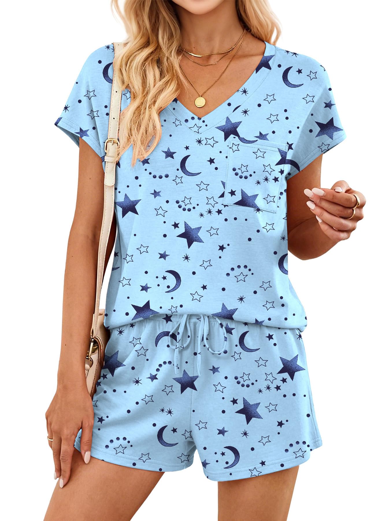 Design: Side-pocket shorts with relaxed fit & adjustable drawstring offer comfort and convenience; the trendy V-neck cap-sleeve top also works as a chic summer piece