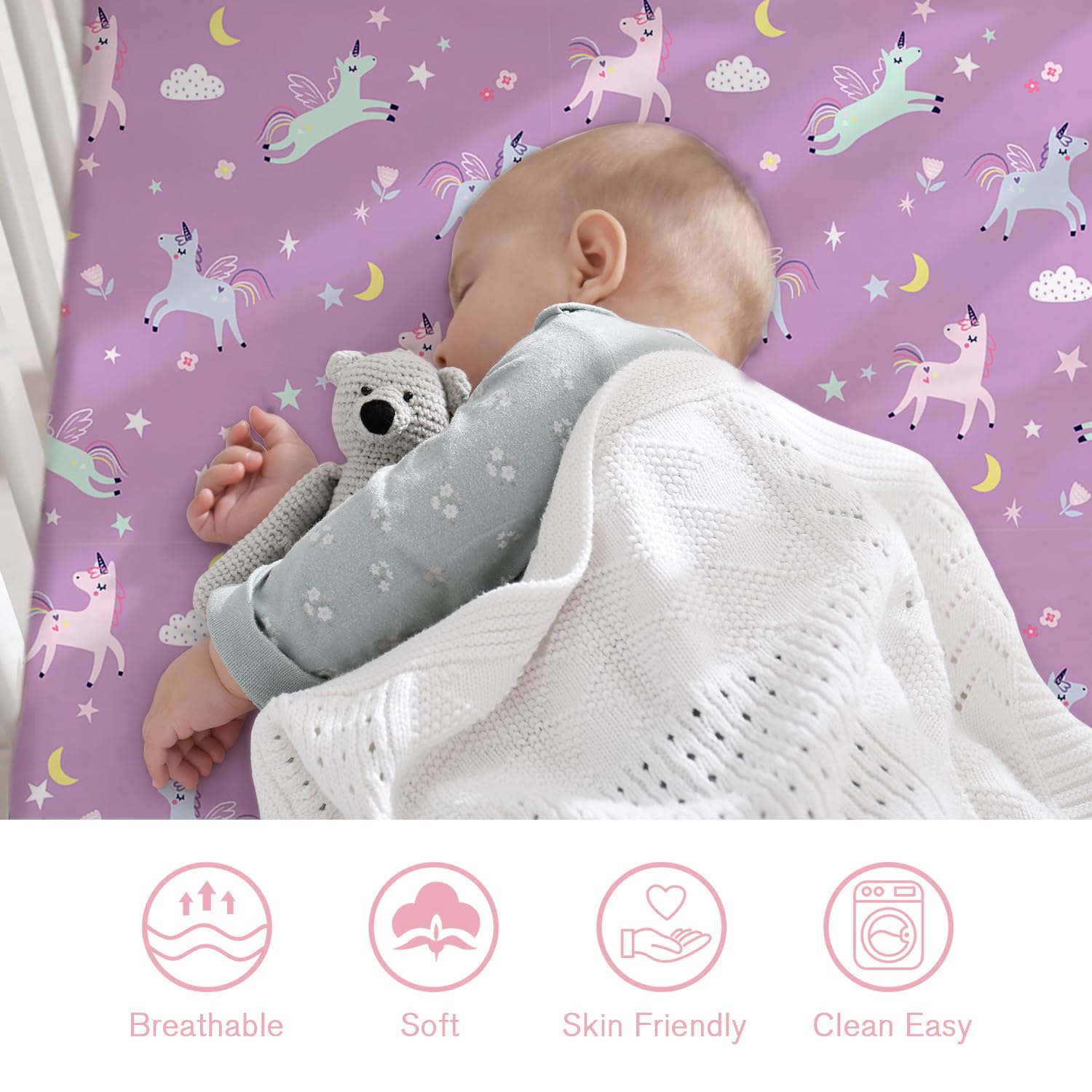 Durable and Easy Care: Built to last, these crib sheets are machine washable and dryer-friendly. They are practical, reliable nursery essentials for modern parents.