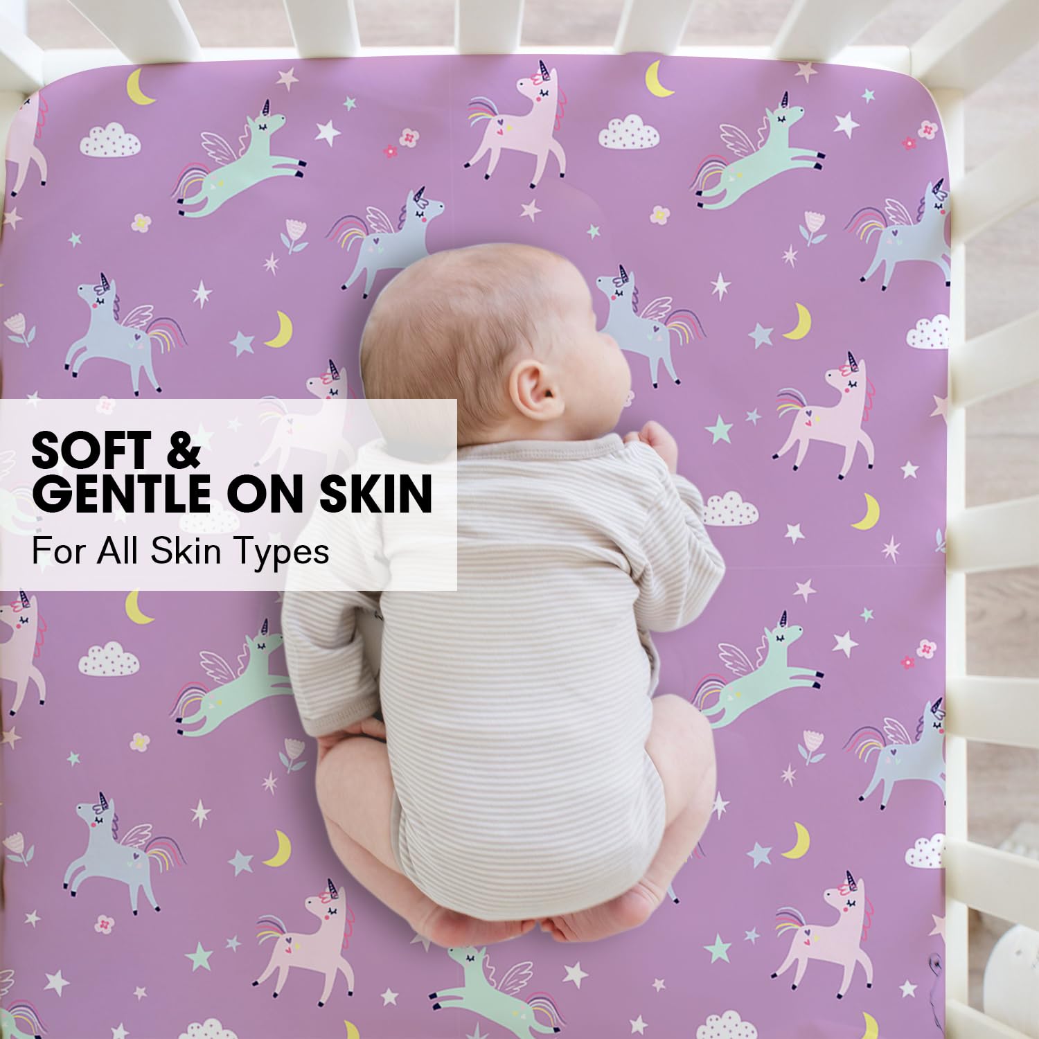 Soft and Breathable: Crafted from 100% premium-quality material, these crib fitted sheets provide a cozy and gentle surface for your baby, suitable for all skin types, including sensitive skin.