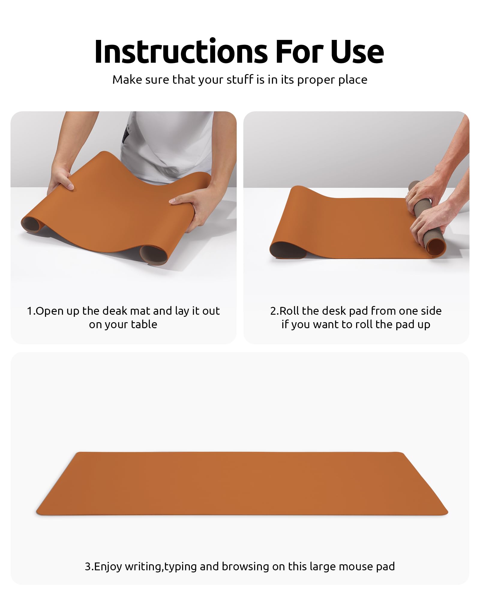 EASY TO CLEAN: Waterproof leather desk pad. Just use cloth for basic clean: liquid, dust, grease and dirt. Wet cloth would be prefer if there are too much dirt in the desk mat.