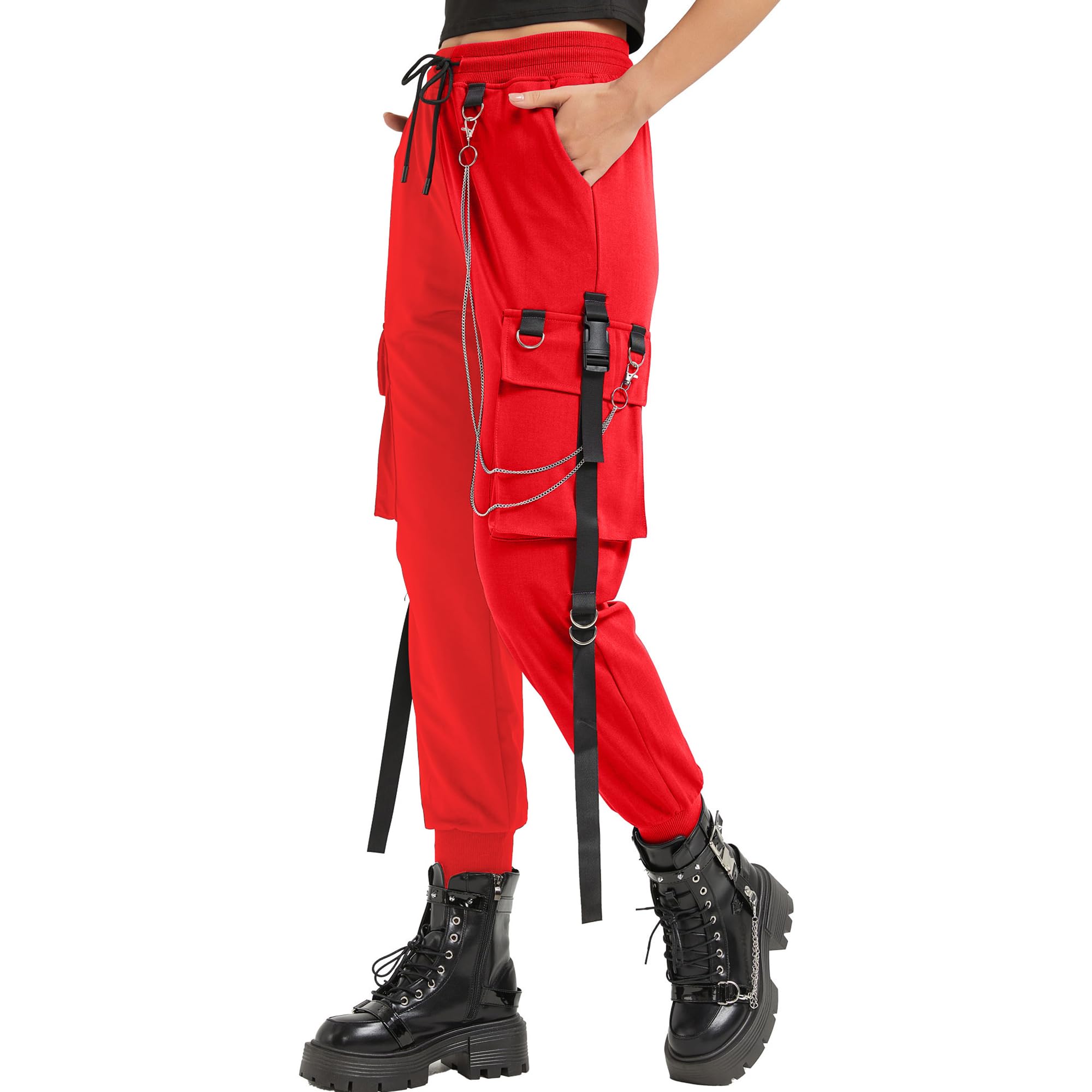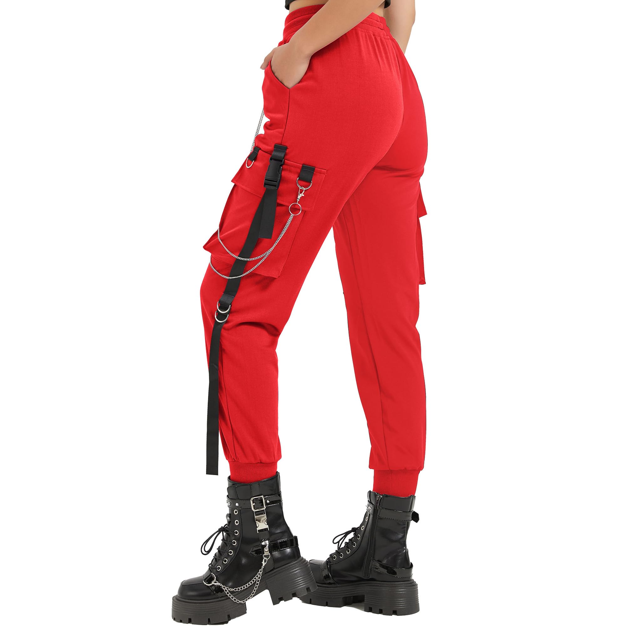 *[High-waist overalls design features]: combat pants women with wide legs, this casual design can perfectly show your long legs, stretch your body, and show your sexy figure and charm. The trousers are decorated with cool metal chains, showing punk style. There are multiple pockets on the left and right sides to store multiple items. Put on these high-waist overalls, you will be cooler and more casual.