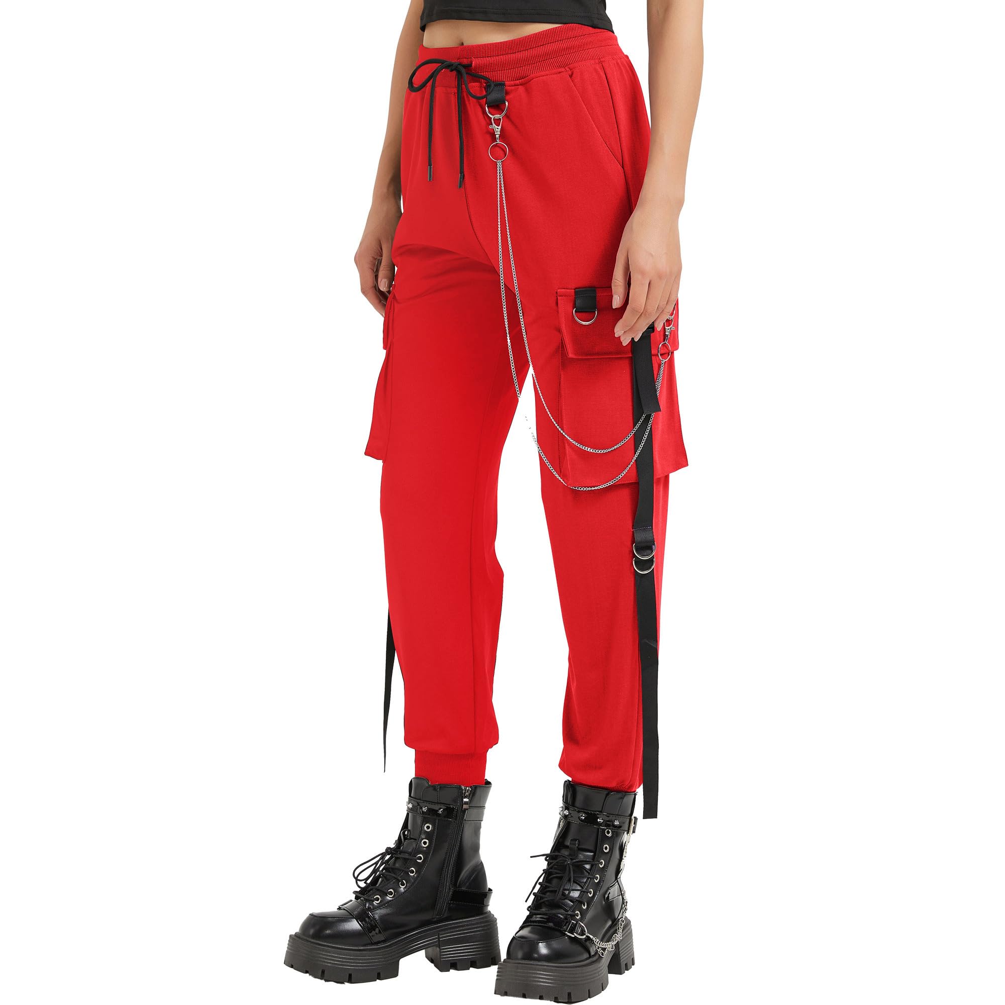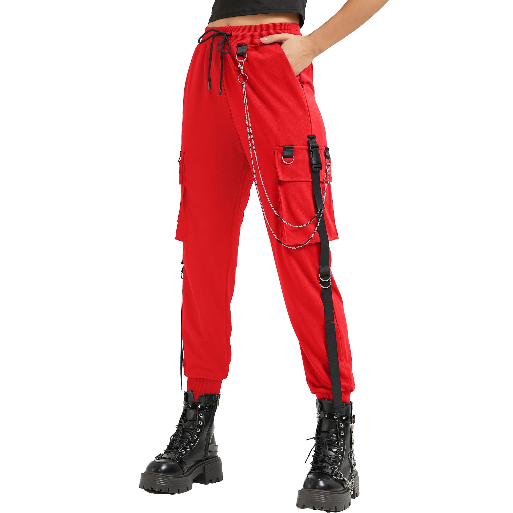 MEINVQIAOTI Black Cargo Pants for Women Techwear Women Loose Street Rock Style Casual Black Pants with Chain Goth Pants